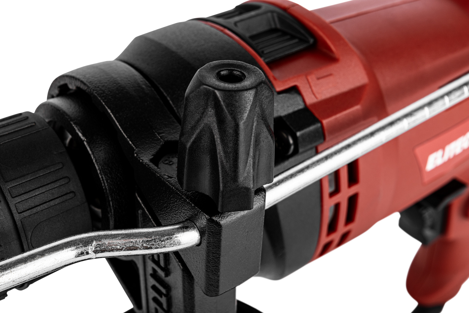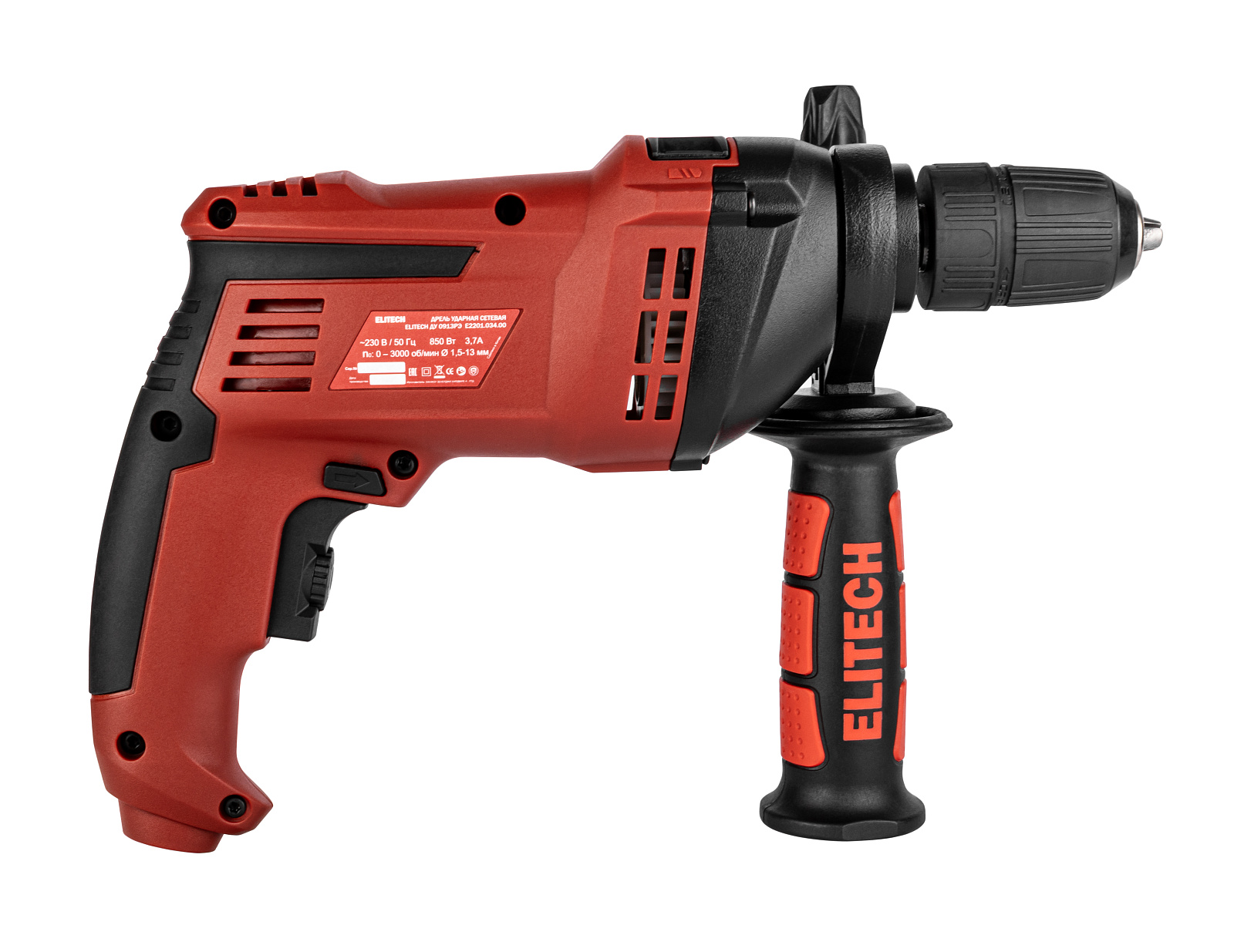 Ударная дрель мощностью 850 Вт с быстрозажимным патроном для оснастки диаметром 1,5-13 мм, предназначена для сверления отверстий в дереве, кирпиче, гипсокартоне, керамической плитке, металле, пластмассе и других производных материалах. В качестве рабочей насадки для сверления используется сверло соответствующего типа - по дереву, по металлу и т.д.