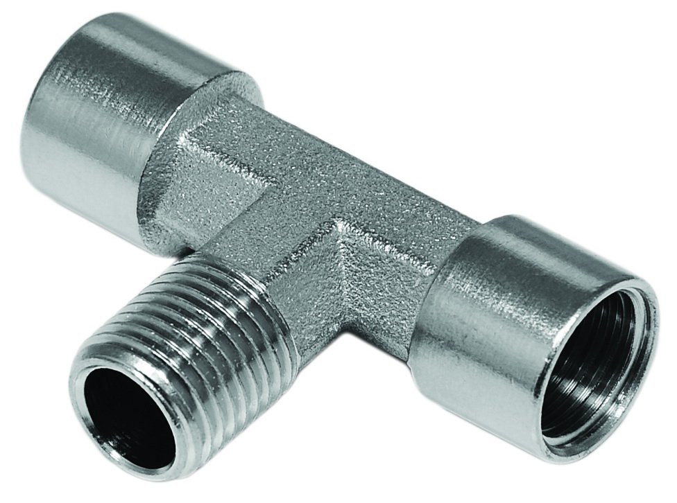 Тройник представляет из себя Т-образный фитинг 1/4''П-1/4''М-1/4''M и используется для соединения деталей с ответной резьбой 1/4''М-1/4''П-1/4''П.2 года