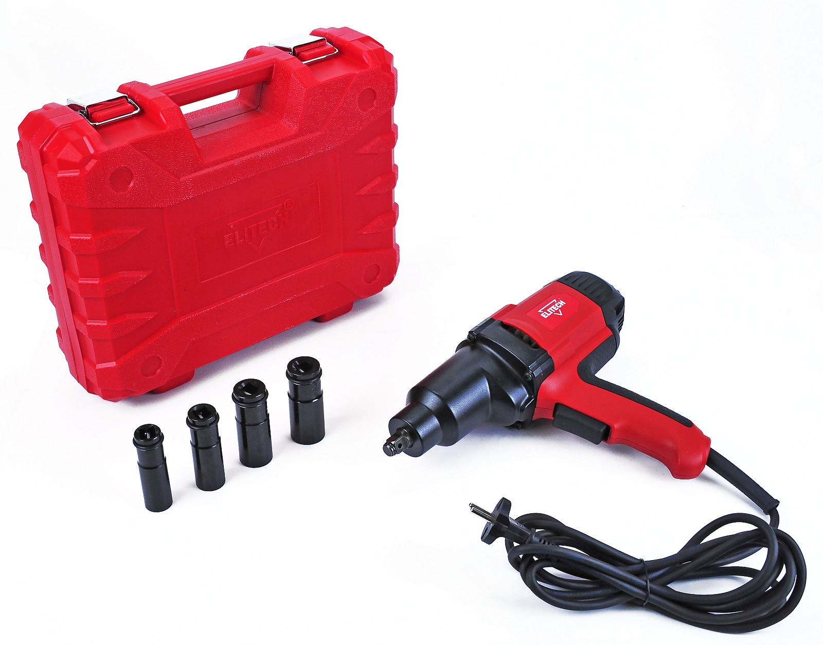 Гайковерт ELITECH ГУ 350РЭ (Е2201.008.01) поставляется в пластиковом кейсе в наборе с 4 торцевыми насадками (17,19, 22, 24 мм). Гайковерт предназначен для работы с резьбовым крепежом (гайки и болты). Тангенциальный удар обеспечивает высокий крутящий момент, не давая обратной реакции на пользователя и позволяет регулировать крутящий момент временем воздействия на крепеж. В качестве рабочей насадки используются торцевые ударные головки с посадкой 1/2”.
