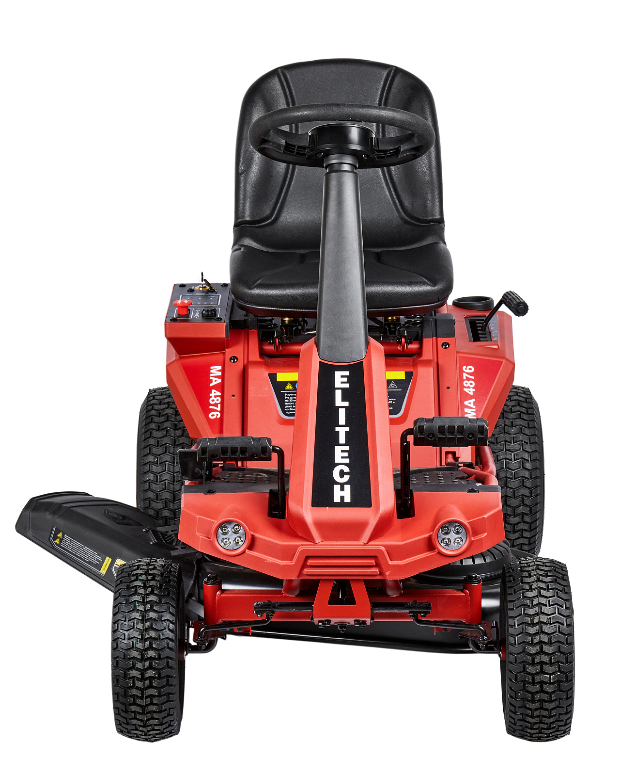 Аккумуляторная газонокосилка с сиденьем оснащена свинцово-кислотным аккумулятором напряжением 48 В и ёмкостью 50 Ач и предназначена для кошения травы на систематически обрабатываемой и предварительно подготовленной поверхности (газон, лужайка, поле для игр и т.п.) с уклоном не более 15 градусов, на участках до 4000 м2, в стандартной комплектации с выбросом скошенной травы вбок, либо кошением травы в режиме мульчирования, когда скошенная трава является удобрением для вновь растущей.