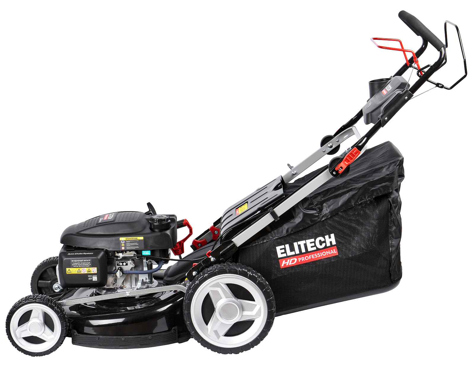 Колеса газонокосилок имеют большой диаметр, что упрощает их маневрирование при эксплуатации. Обода колёс сделаны из резины, а сами колёса установлены на двойные шарикоподшипники, что увеличивает ресурс эксплуатации компонентов. Модели имеют эргономичный дизайн, оснащены приводом на колеса, центральной регулировкой высоты кошения, объёмным травосборником, дефлектором выброса скошенной травы вбок и заглушкой для мульчирования, чтобы расширить функциональность техники, в зависимости требований при обработке участка с газоном.