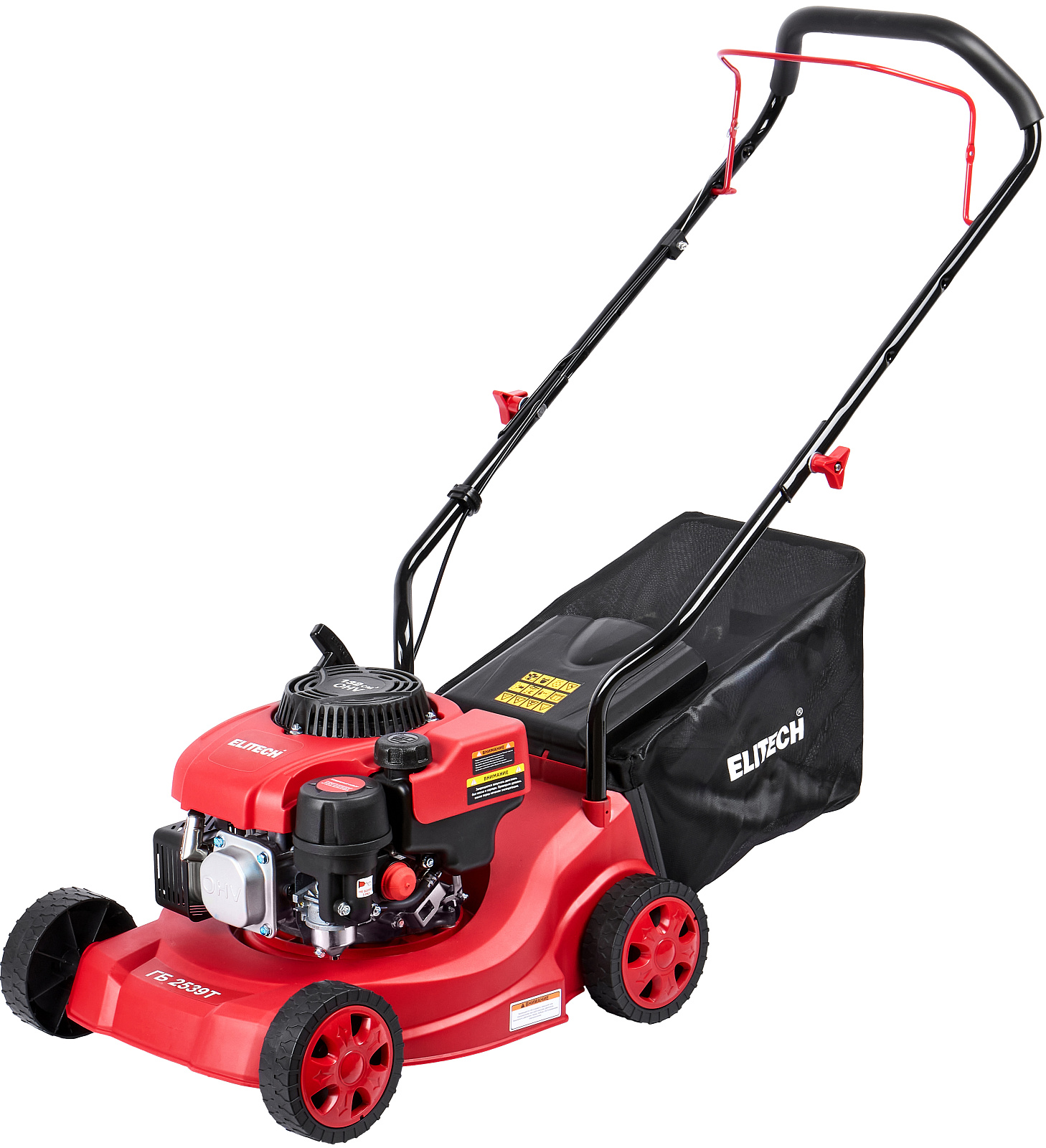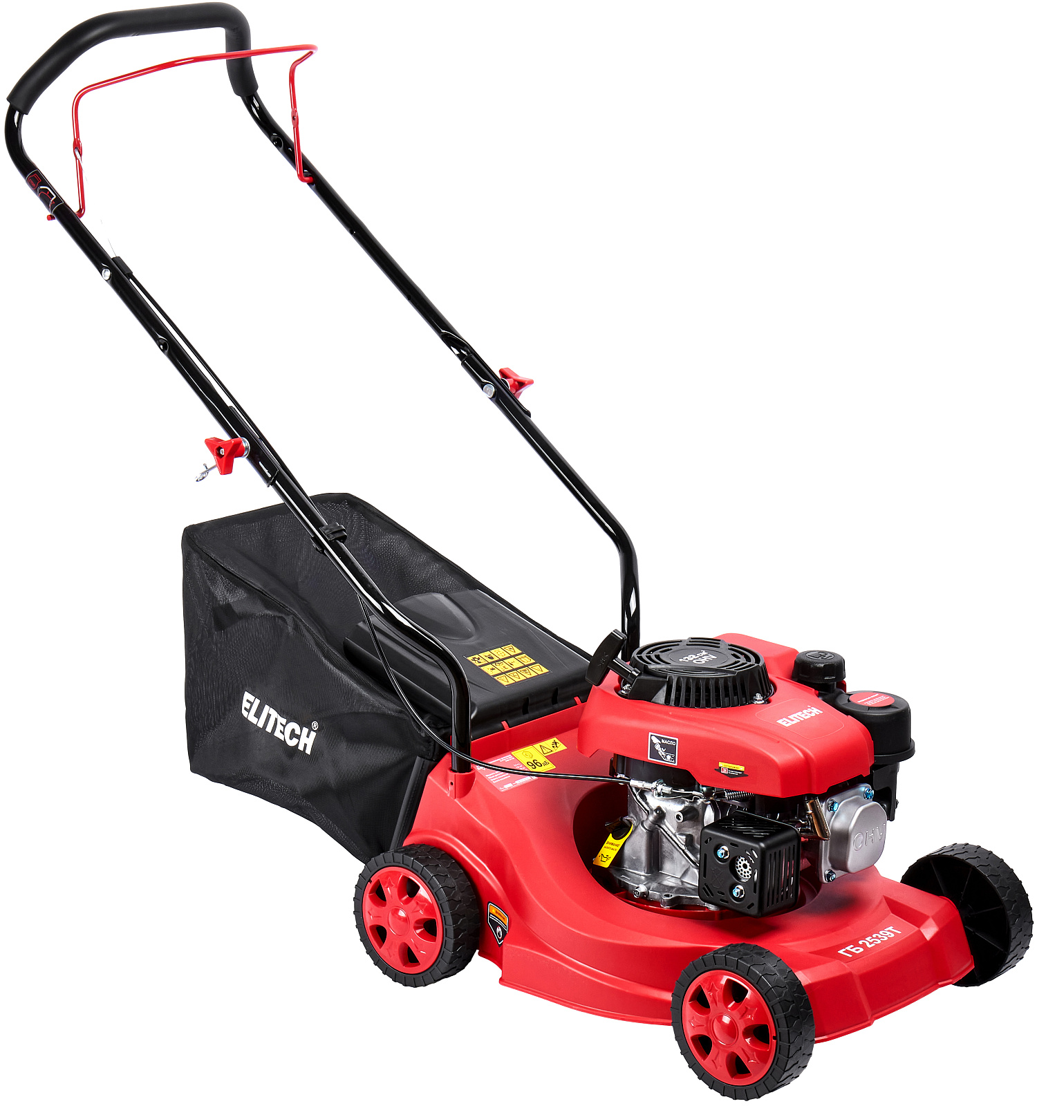 Газонокосилка бензиновая ELITECH ГБ 2539Т с двигателем мощностью 3,4 л.с., шириной кошения 390 мм и высотой 30-65 мм, предназначена для кошения газонов, как на приусадебных участках, так и для использования специалистами служб благоустройства и озеленения, на подготовленных и систематически обрабатываемых участках с ровной поверхностью, без ям и кочек.