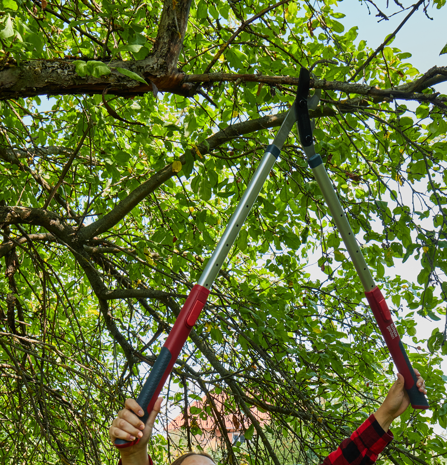 Ножницы с телескопическими ручками оснащены зубчатой передачей, что позволяет вдвое снизить прилагаемые усилия.