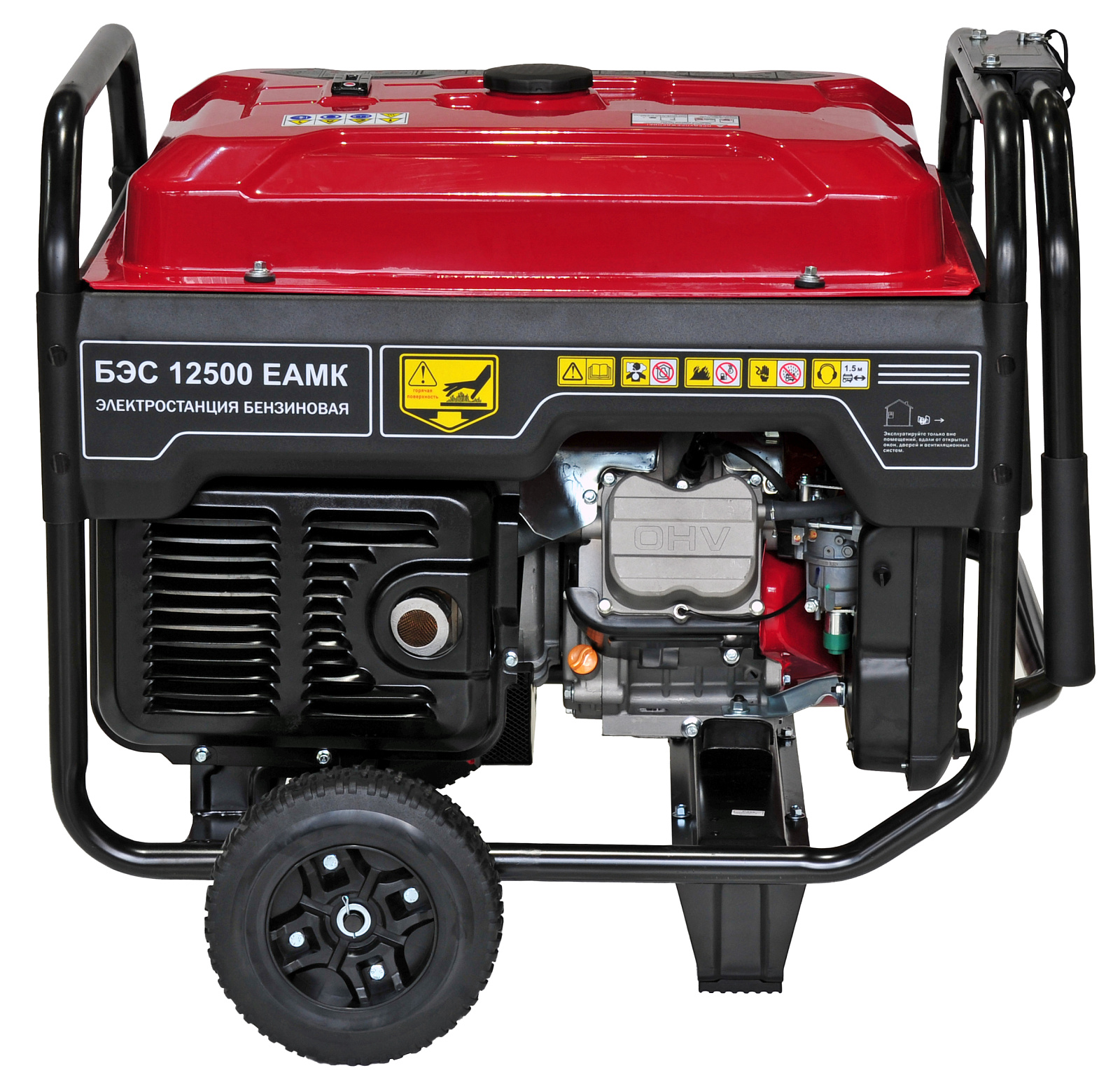 Электростанция БЭС 12500 ЕАМК с четырехтактным бензиновым двигателем. Однофазная. Номинальная мощность 9,0кВт. Две розетки 220В/16А. Одна розетка 220В/32А. Электрический стартер.Возможность подключения блока автоматического запуска АВР 10. Колеса и ручка в комплекте.
