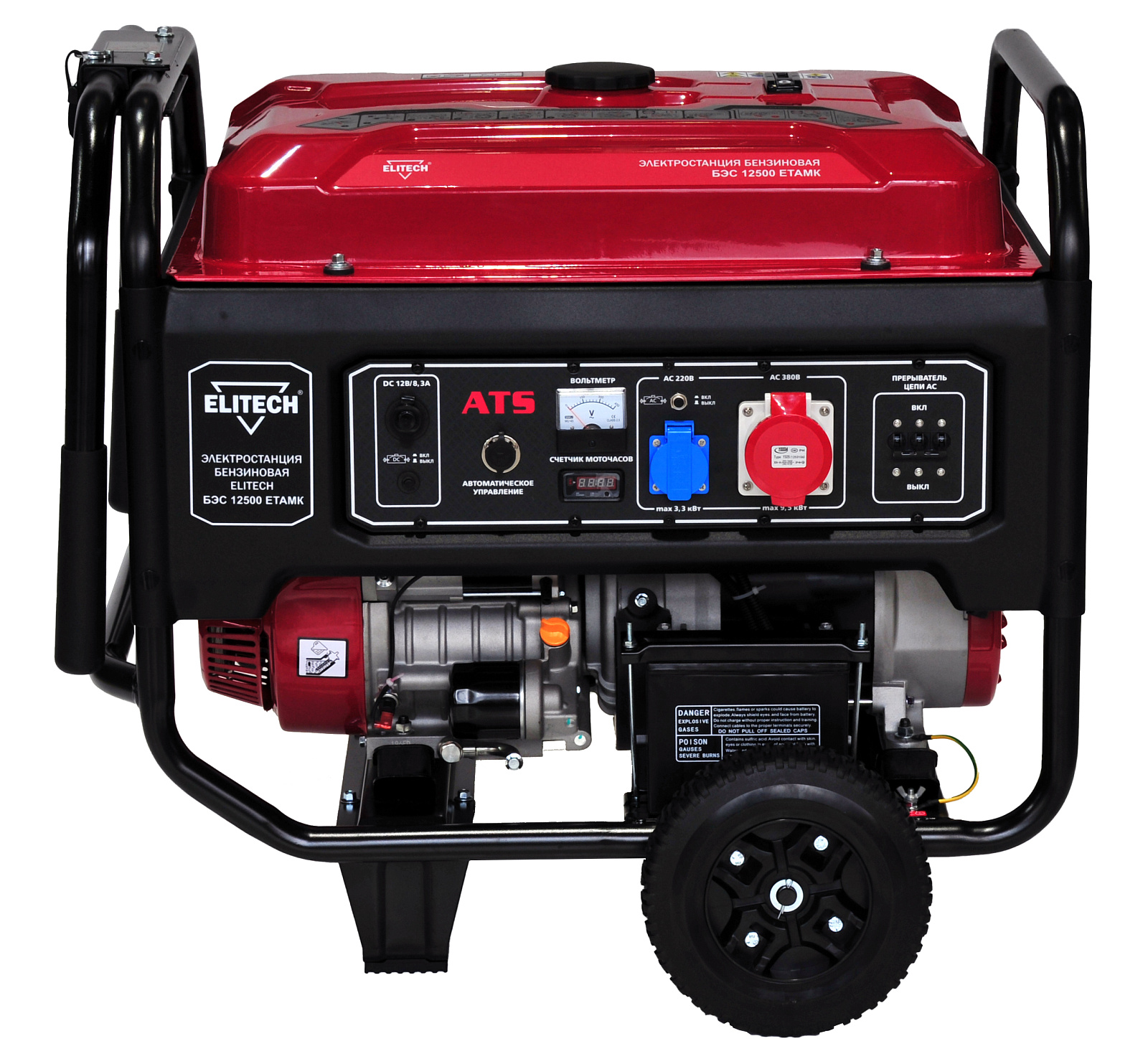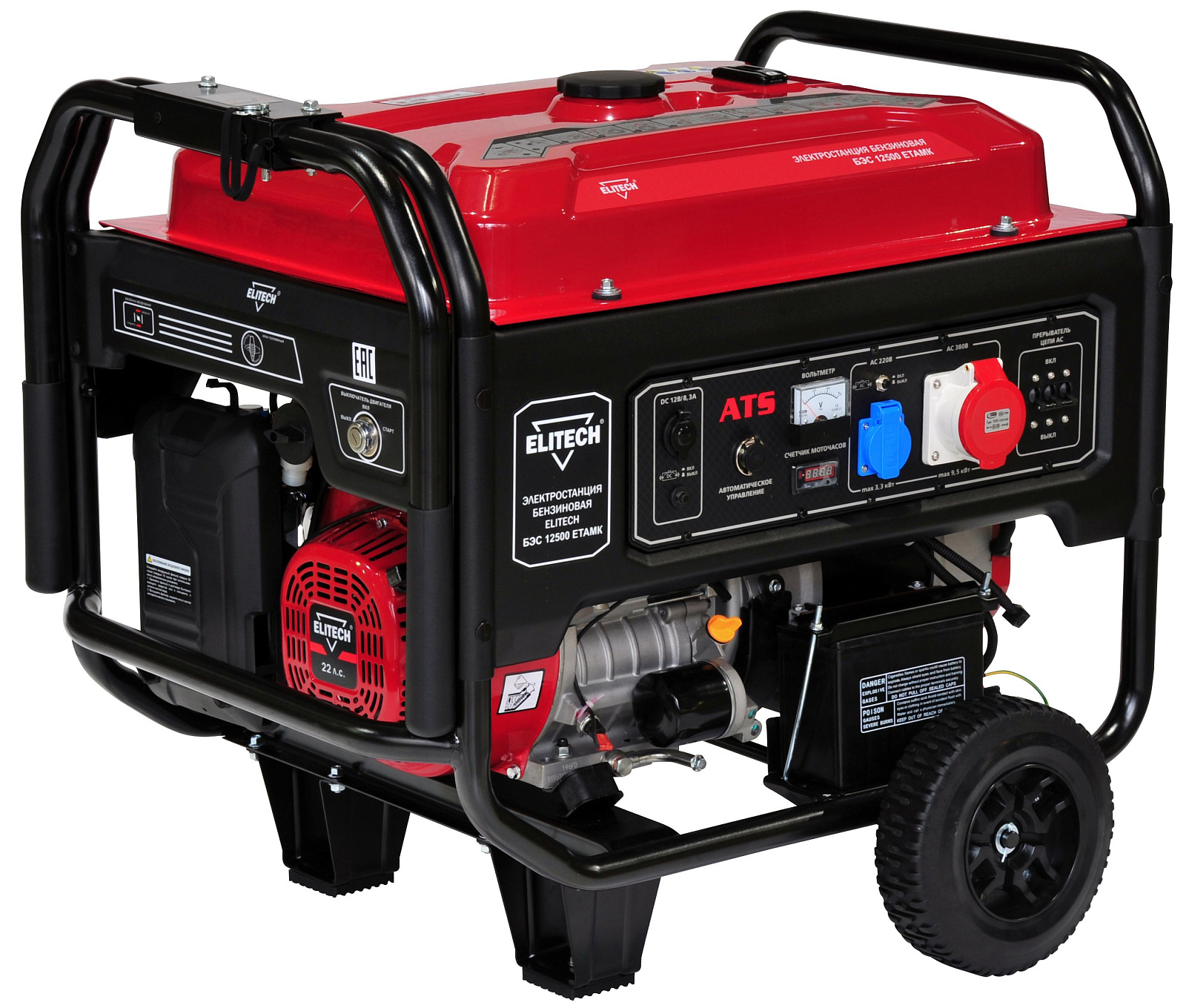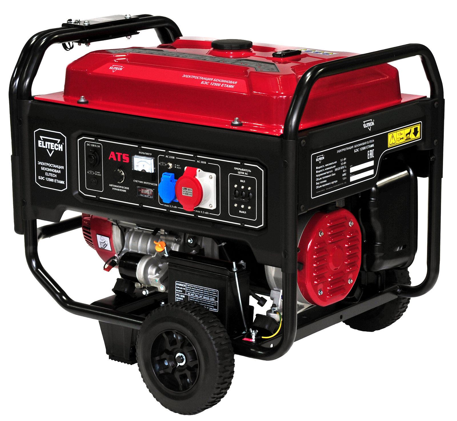 Электростанция бензиновая трехфазная БЭС12500ЕТАМК с четырехтактным бензиновым двигателем. Трехфазная. Номинальная мощность 9 кВт при 380В, 3 кВт при 220В. Одна розетка 220В/16А. Одна розетка 380В/32А. Электрический стартер. Работа с блоком автоматического ввода резерва АВР 20Т.