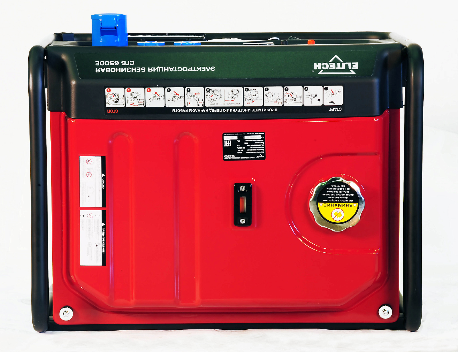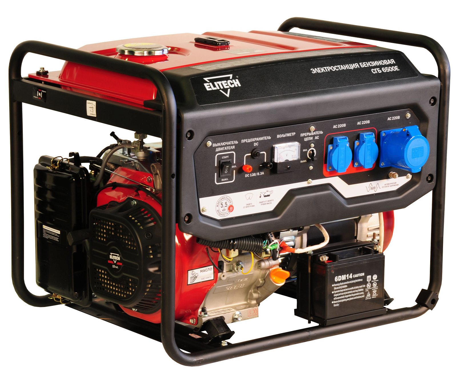 Электростанция СГБ 6500 Е с четырехтактным бензиновым двигателем. Однофазная. Номинальная мощность 5 кВт. Две розетки 220В/16А. Одна розетка 220В/32А. Электростартер.