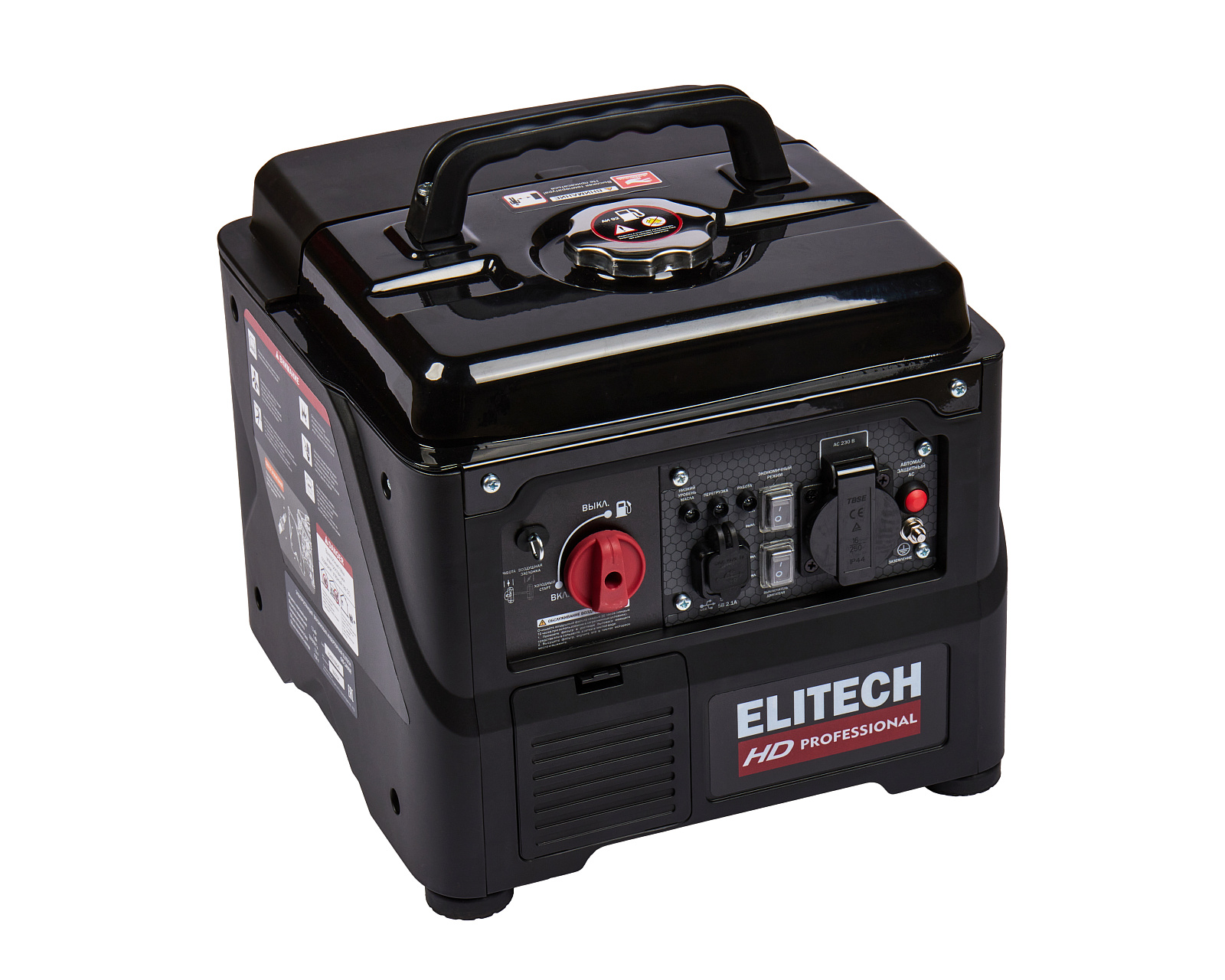 Инверторная бензиновая электростанция Elitech предназначена для безопасной и безотказной работы в качестве резервного источника переменного однофазного тока напряжением 230 В, частотой 50 Гц и максимальной мощностью 1,2 кВт.