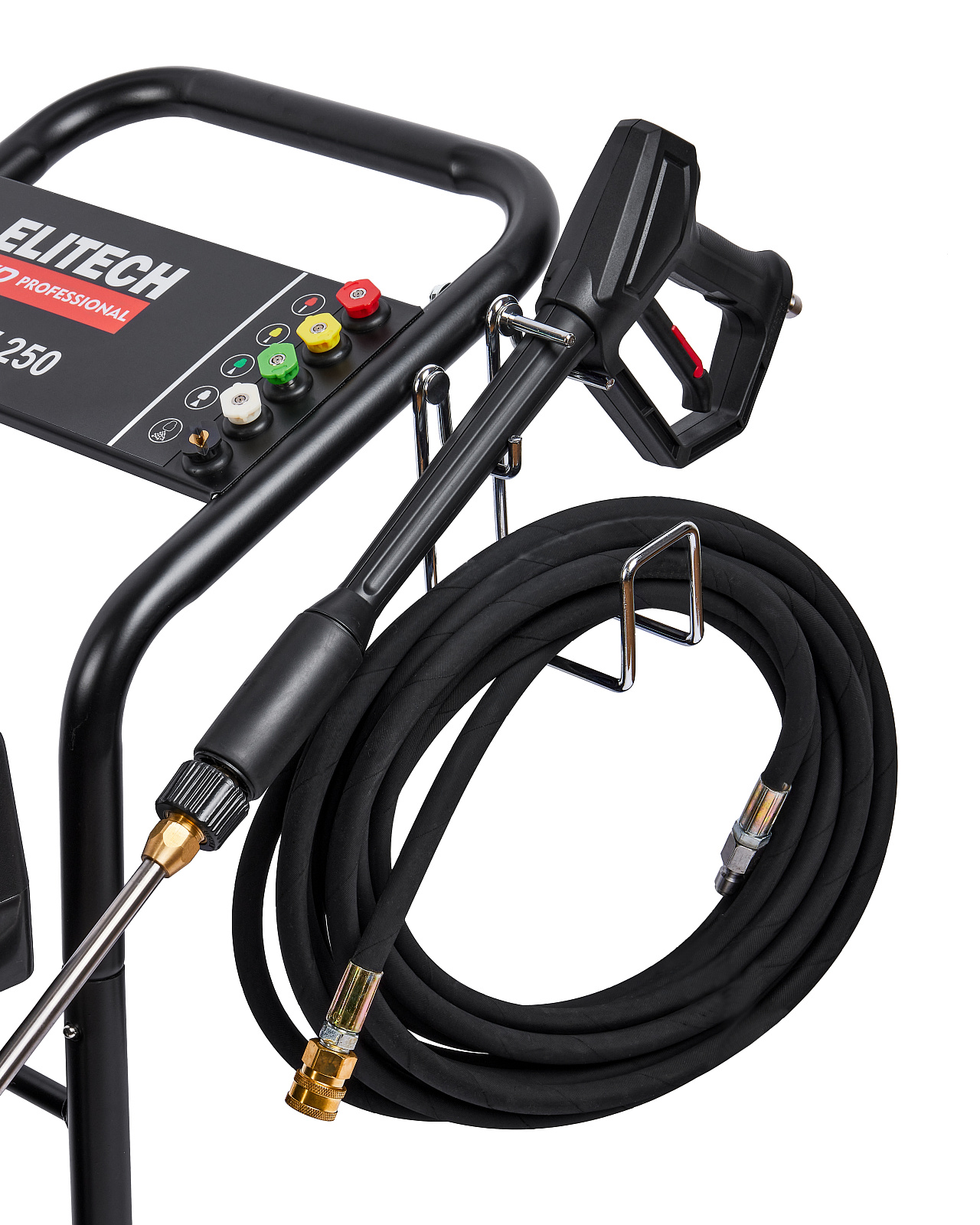 Мойка Elitech является самовсасывающей и может забирать воду, как из водопровода, так и из емкости с водой.