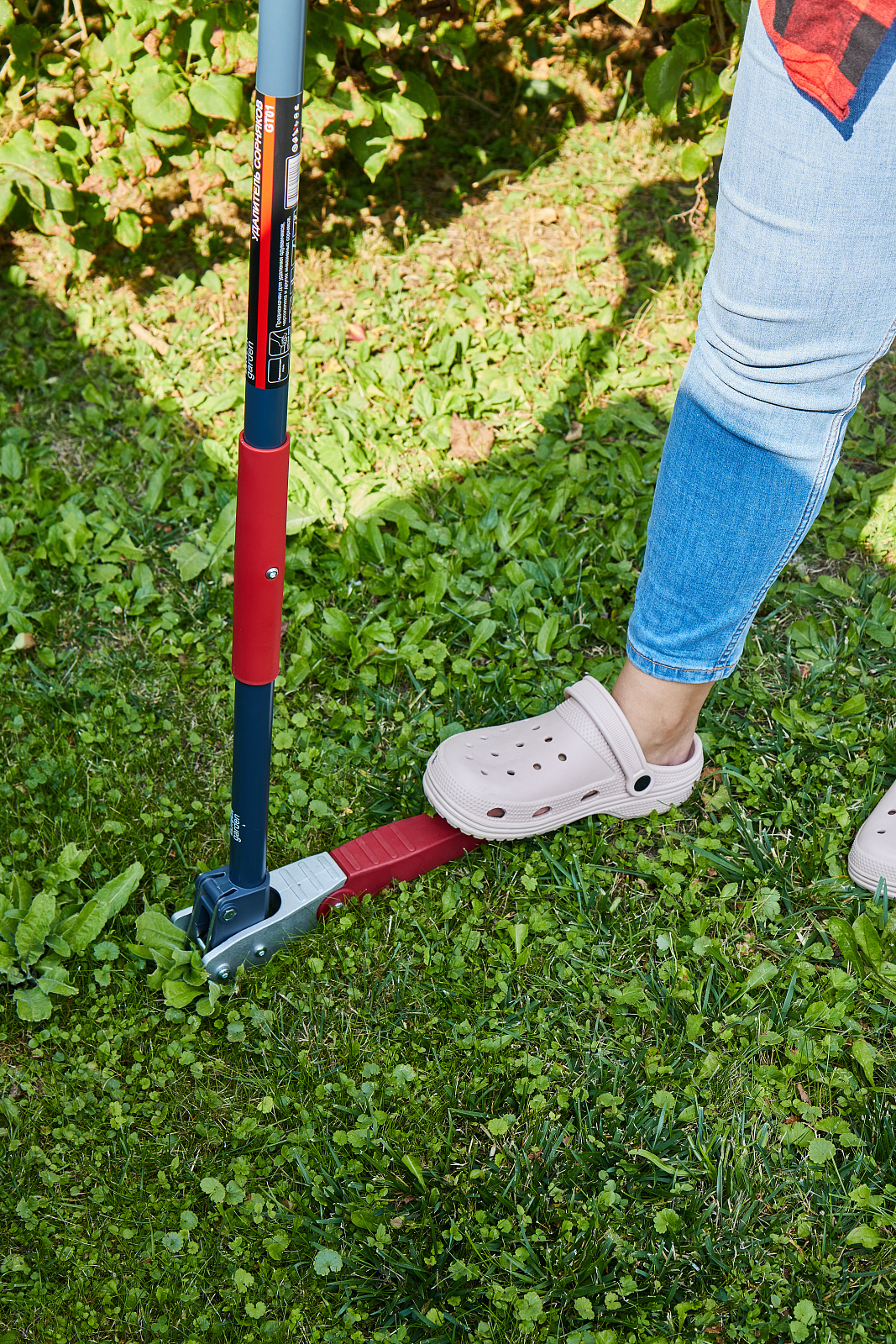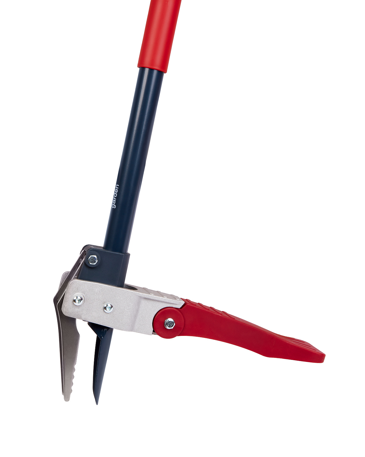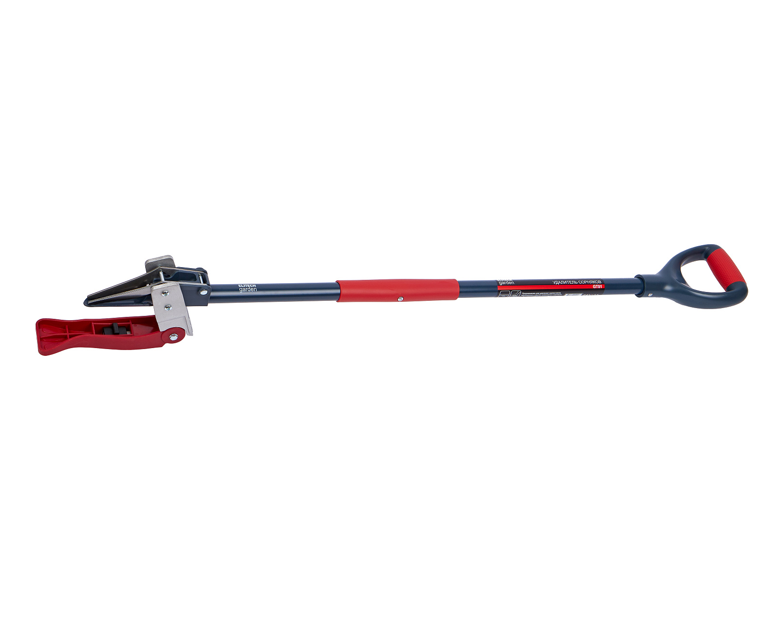 Удалитель сорняков с зажимным механизмом и ножным упором, позволяет точечно выкапывать из земли корень сорняка.