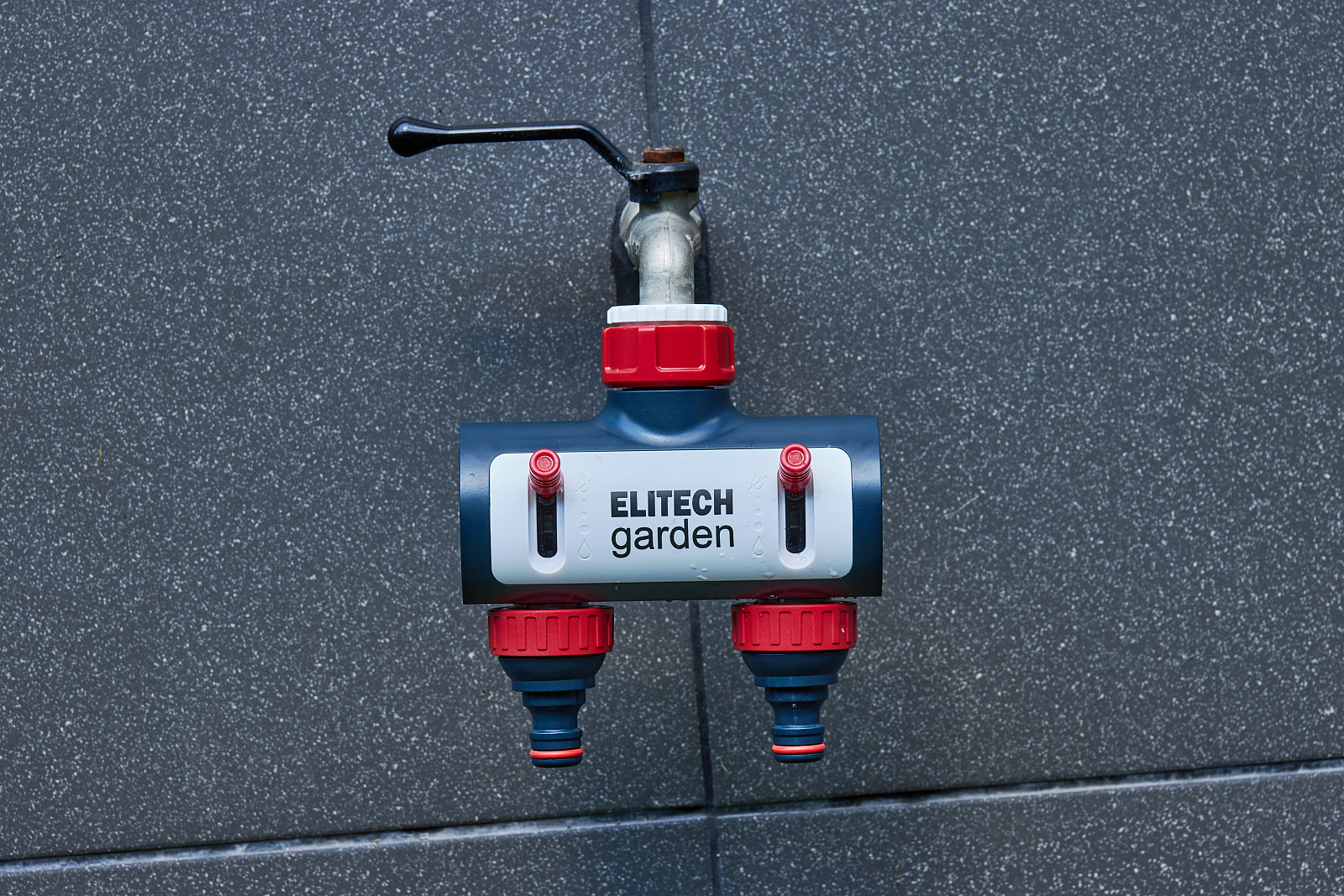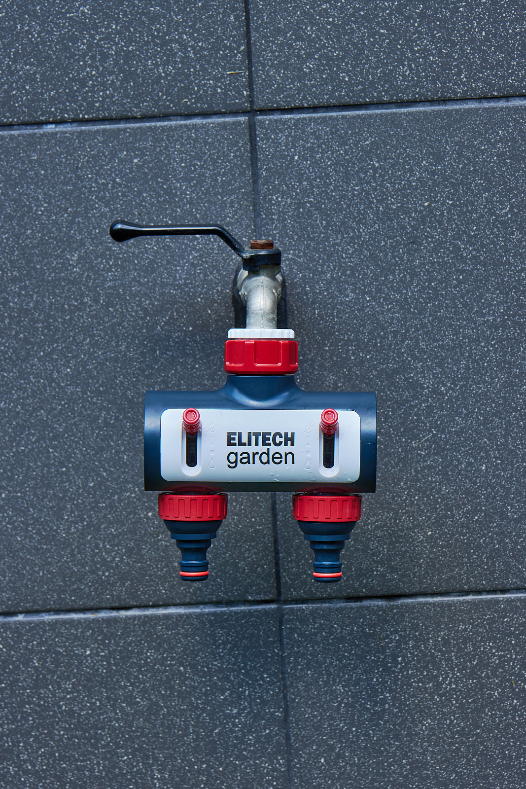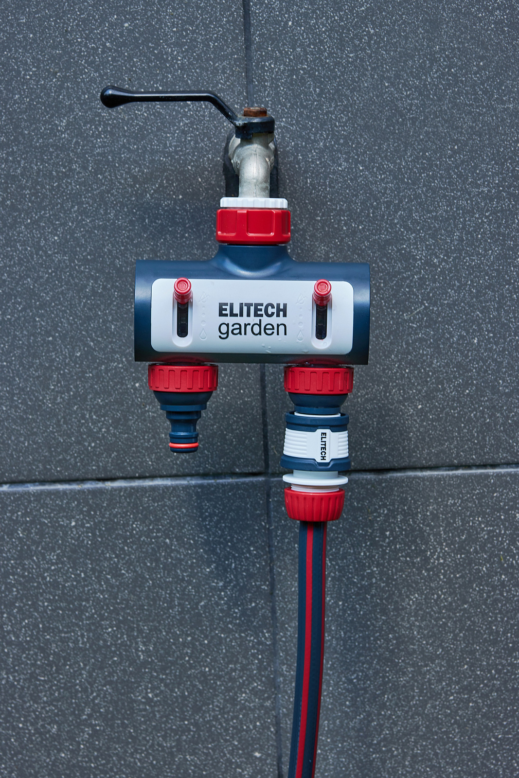 ** Распределитель потоков 2-х канальный премиум HF 003 Elitech Garden- используется для подключения двух шлангов к стационарным водным магистралям (краны, водорозетки).