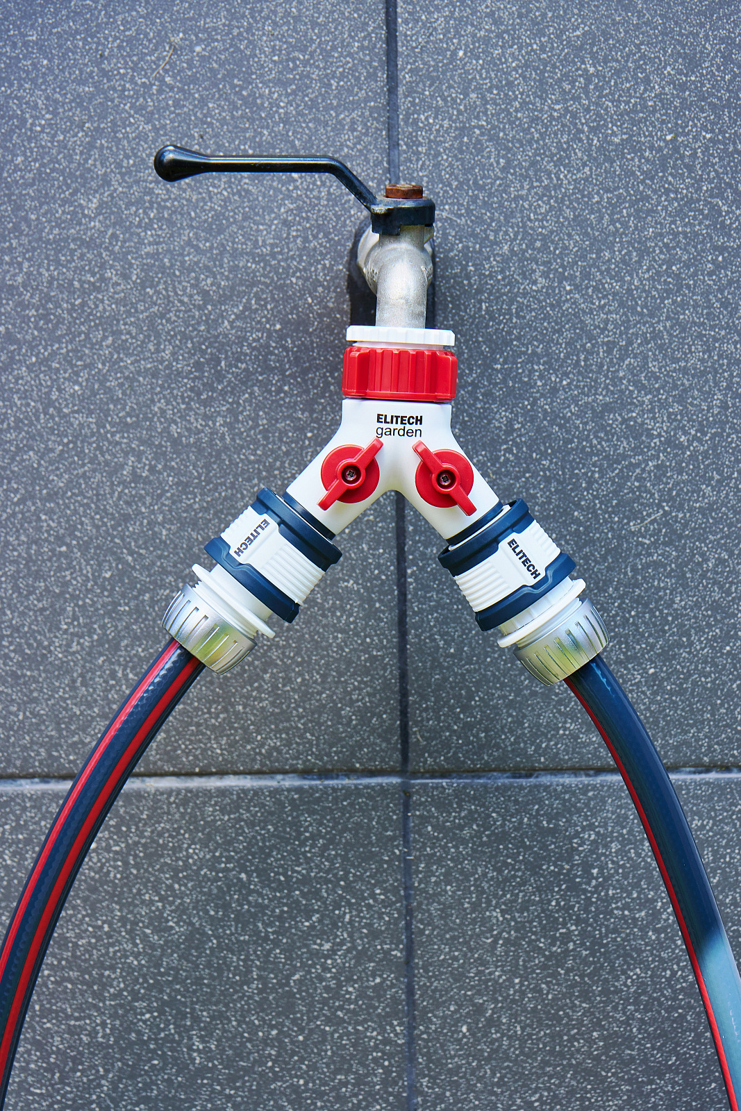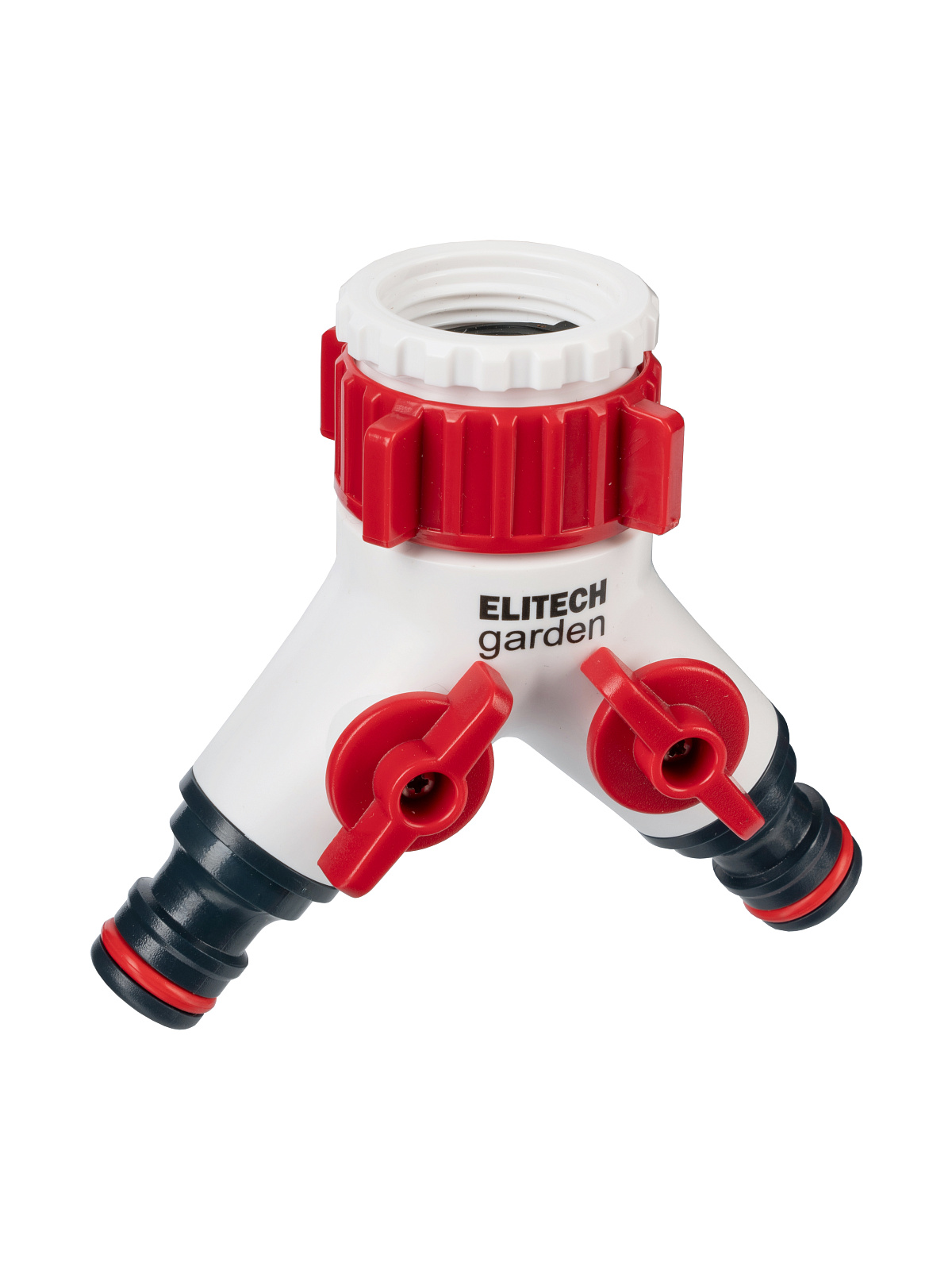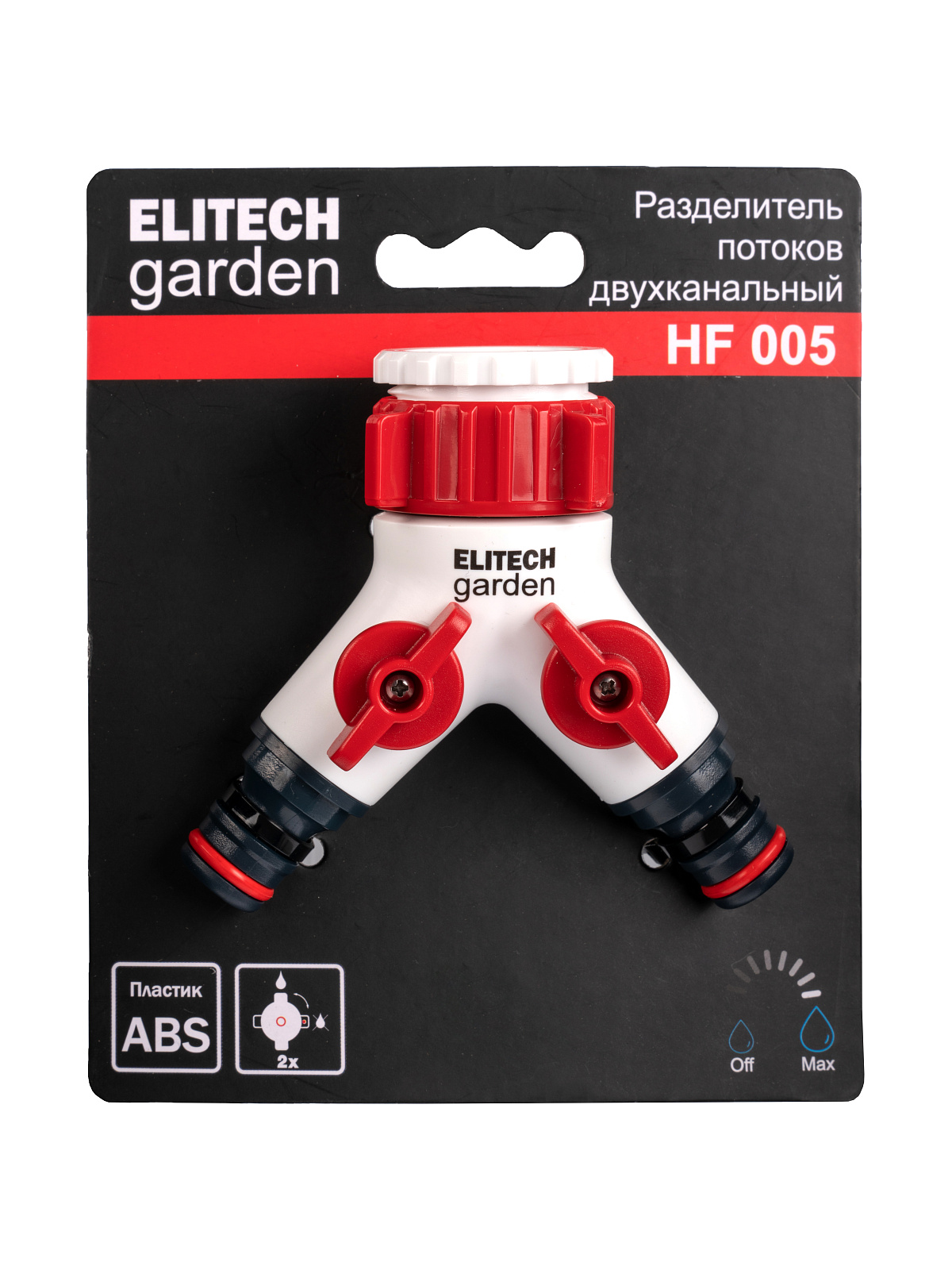 ** Распределитель потоков 2-х канальный HF 005 Elitech Garden используется для подключения двух шлангов к стационарным водным магистралям (краны, водорозетки).