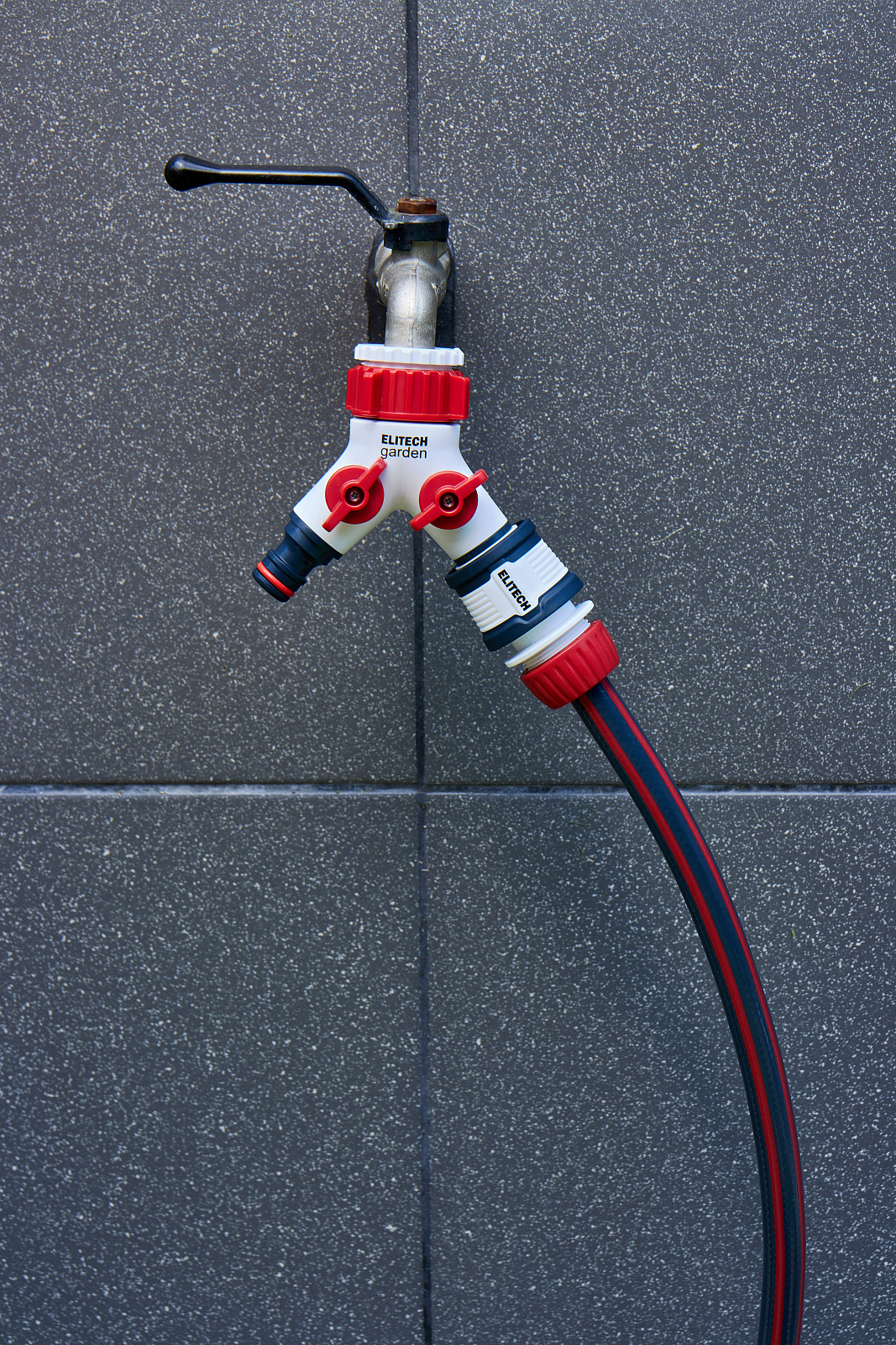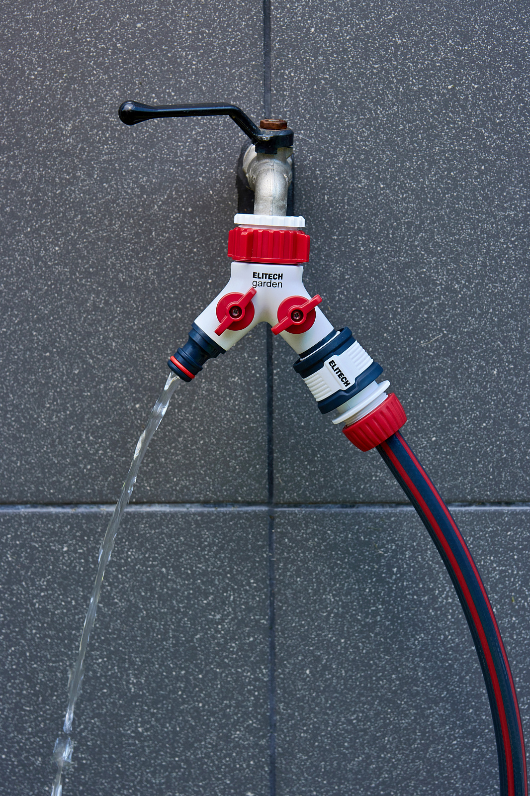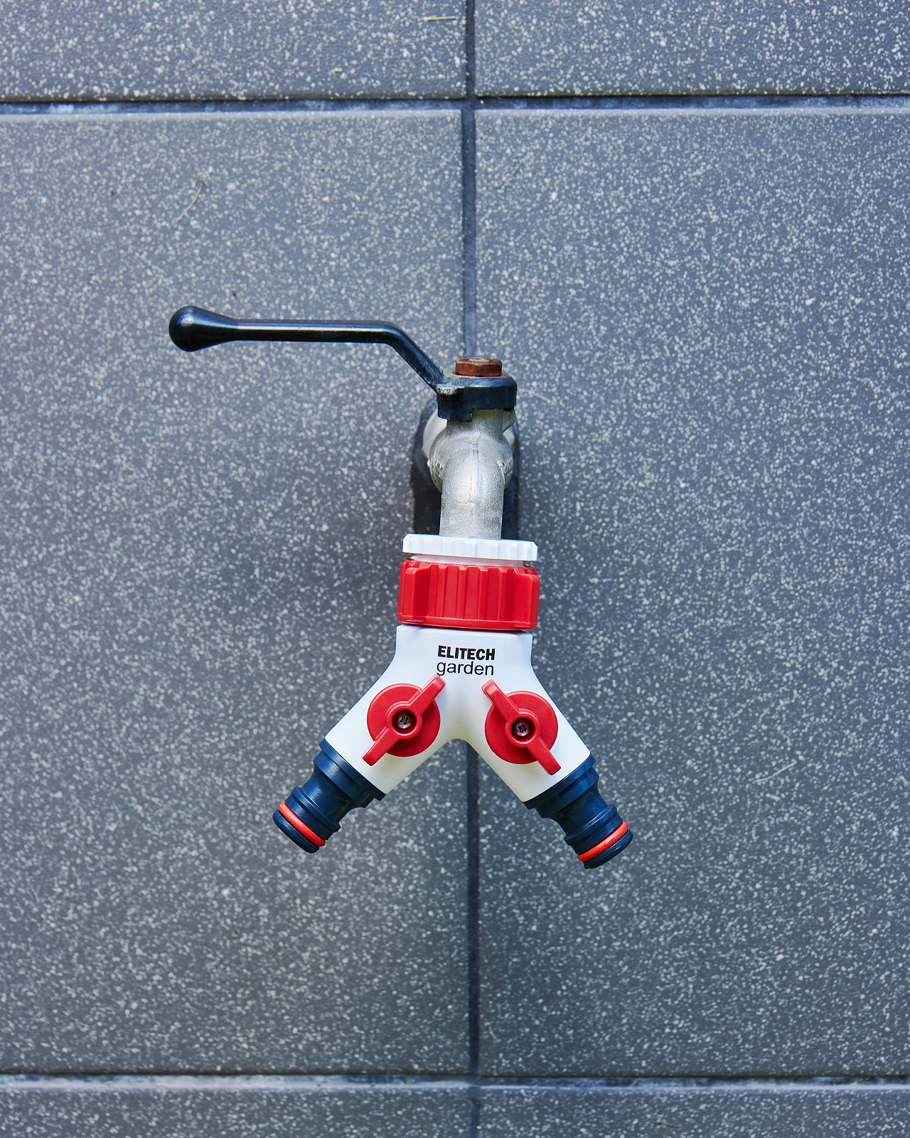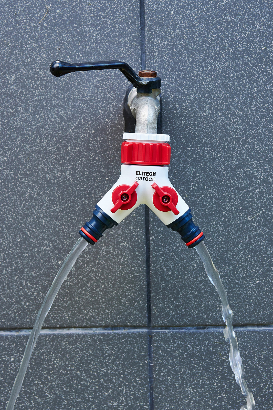 ** Распределитель потоков 2-х канальный HF 005 Elitech Garden используется для подключения двух шлангов к стационарным водным магистралям (краны, водорозетки).