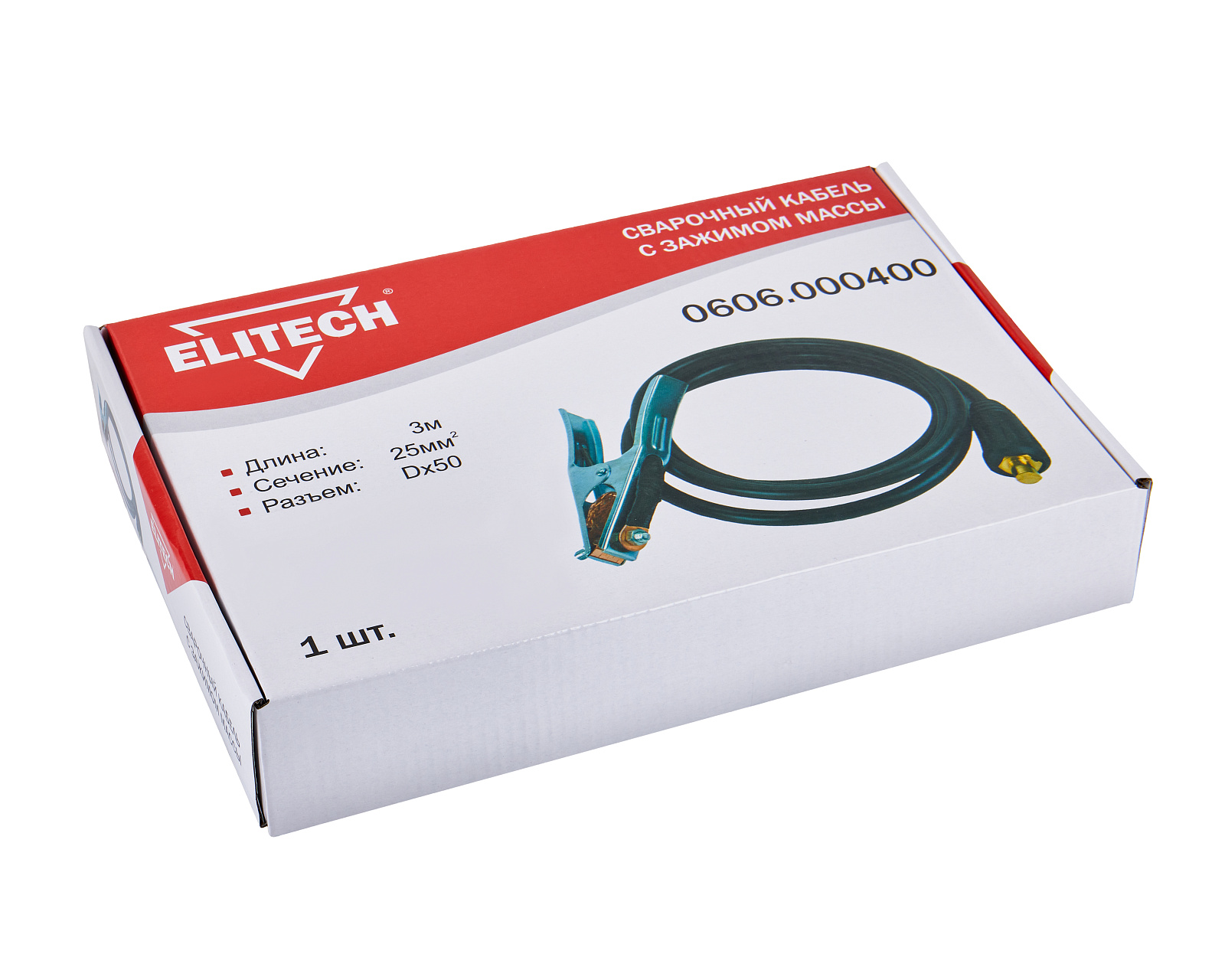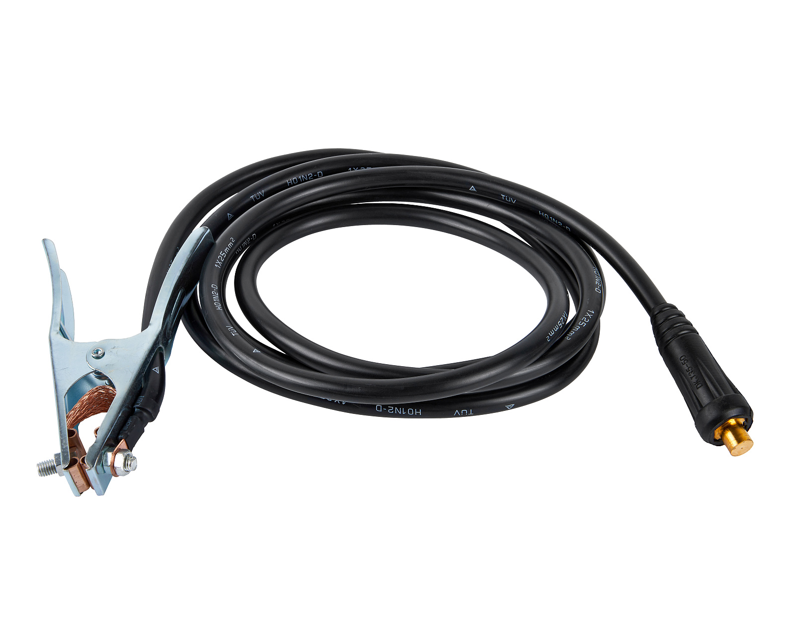 Кабель сварочный с зажимом на массу, длина 3 м, разъем DX50, ток до 250А, сечение 25 кв.мм, напряжение 28 В.