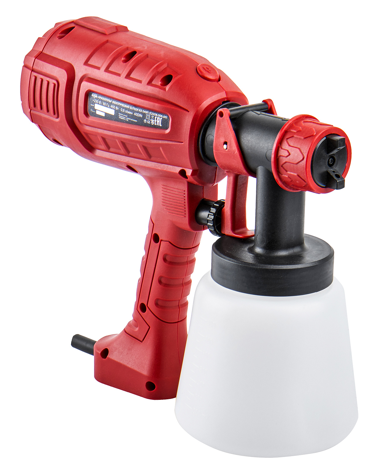 Краскопульт электрический компрессорного типа мощностью 450 Вт и производительностью 0,5 л/мин используется для распыления эмалевых и водоэмульсионных красок, грунтовок, прозрачных лаков, морилок, средств защиты древесины, масел, дезинфицирующих средств на основе растворителей и воды.