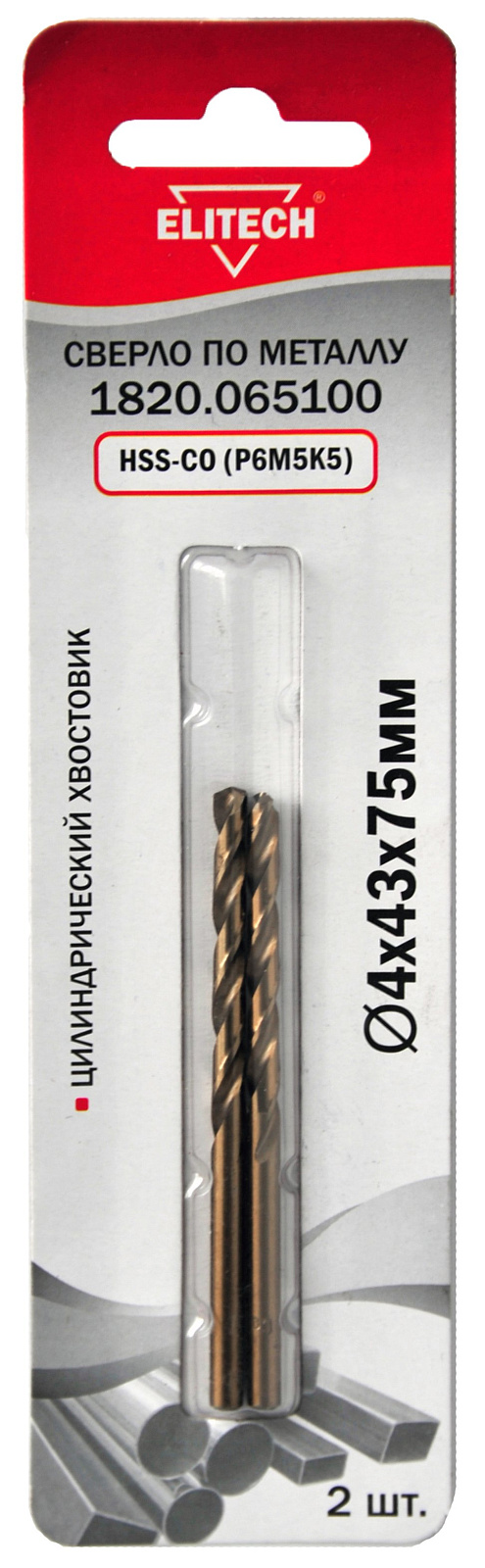 Кобальтовое сверло 4.0х75 2шт 1820.065100