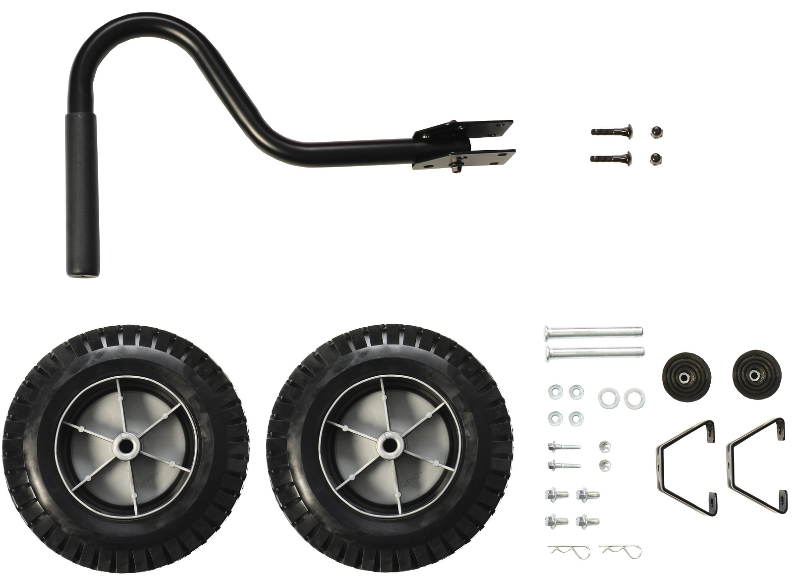 Колеса 8' – 2 шт, упоры – 2 шт, рукоятка – 1 шт, крепеж.