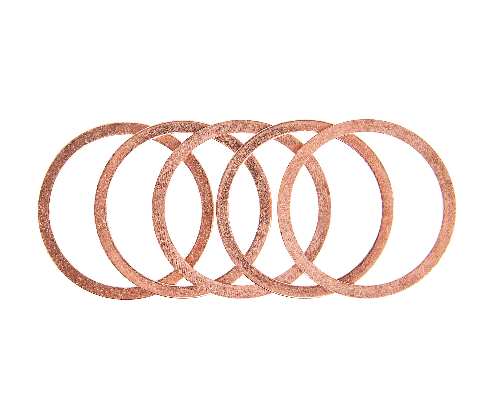 Медное кольцо 33х39х1 мм используется как прокладка или шайба для облегчения откручивания сверлильных коронок с резьбовой посадкой на патроне сверлильного или бурильного станка.