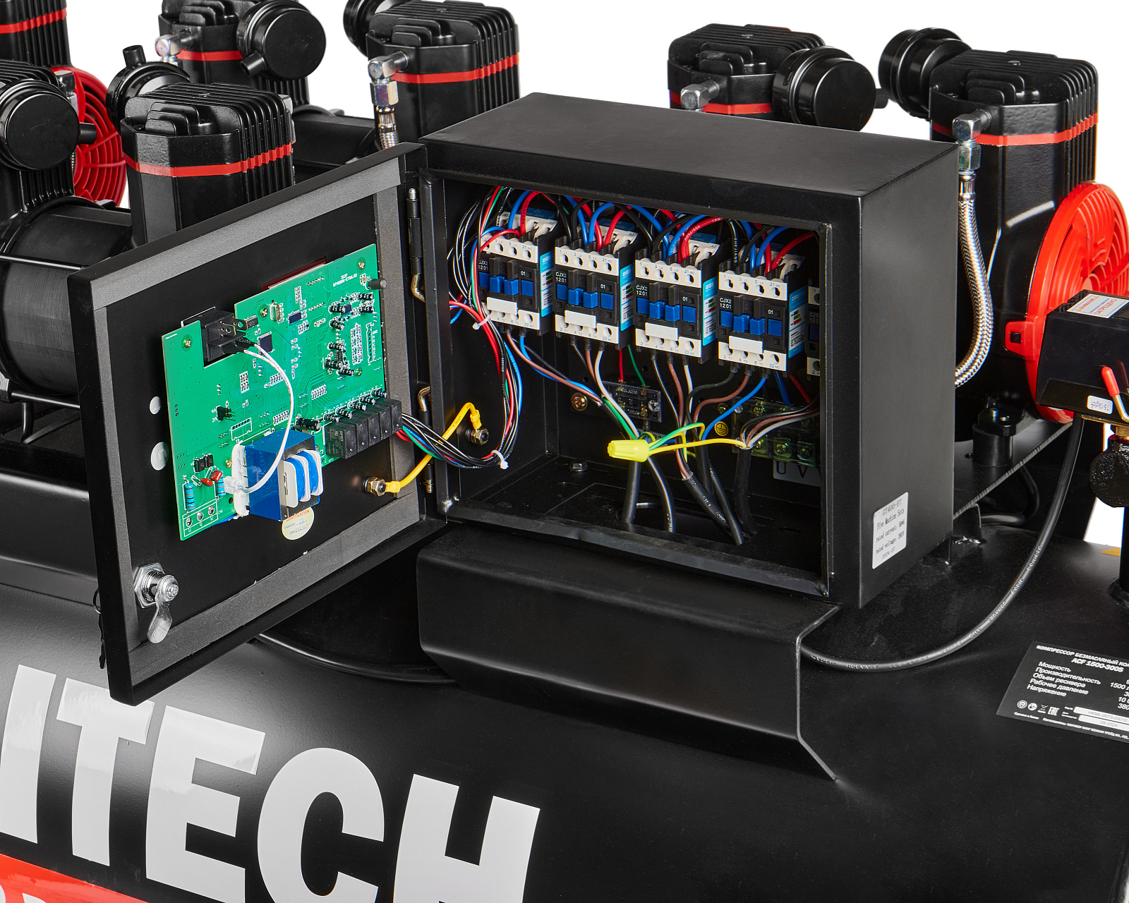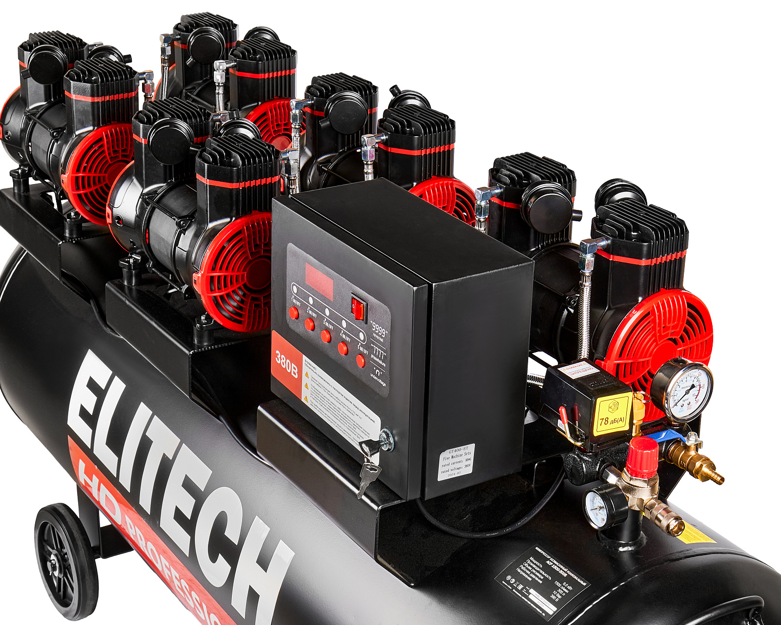 Безмасляный малошумный компрессор мощностью 9,0 кВт и производительностью 1300 л/мин с максимальным рабочим давлением 10 бар.