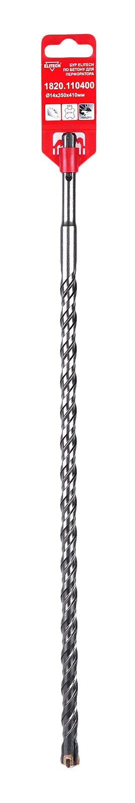 Квадробур по бетону диаметром 14 мм и длиной 410 мм с четырьмя твердосплавными режущими кромками и двойной спиралью для перфораторов с патроном SDS-plus, представляет собой инструментальную оснастку, с помощью которой можно сверлить отверстия в конструкциях, изготовленных также из кирпича, натурального и искусственного камня.