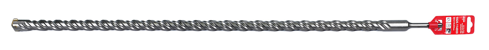 Квадробур по бетону диаметром 25 мм и длиной 800 мм с четырьмя твердосплавными режущими кромками и двойной спиралью для перфораторов с патроном SDS-plus, представляет собой инструментальную оснастку, с помощью которой можно сверлить отверстия в конструкциях, изготовленных также из кирпича, натурального и искусственного камня.