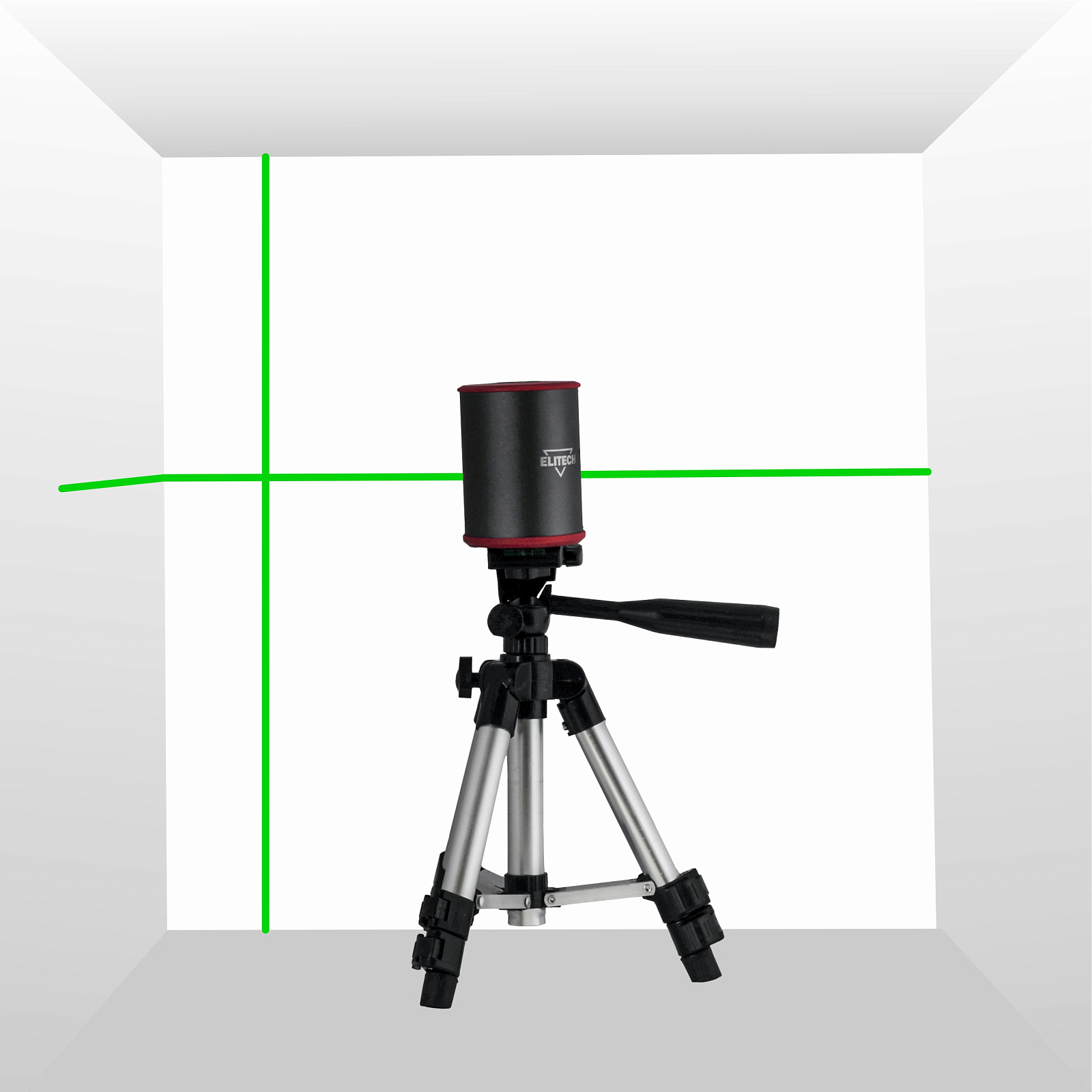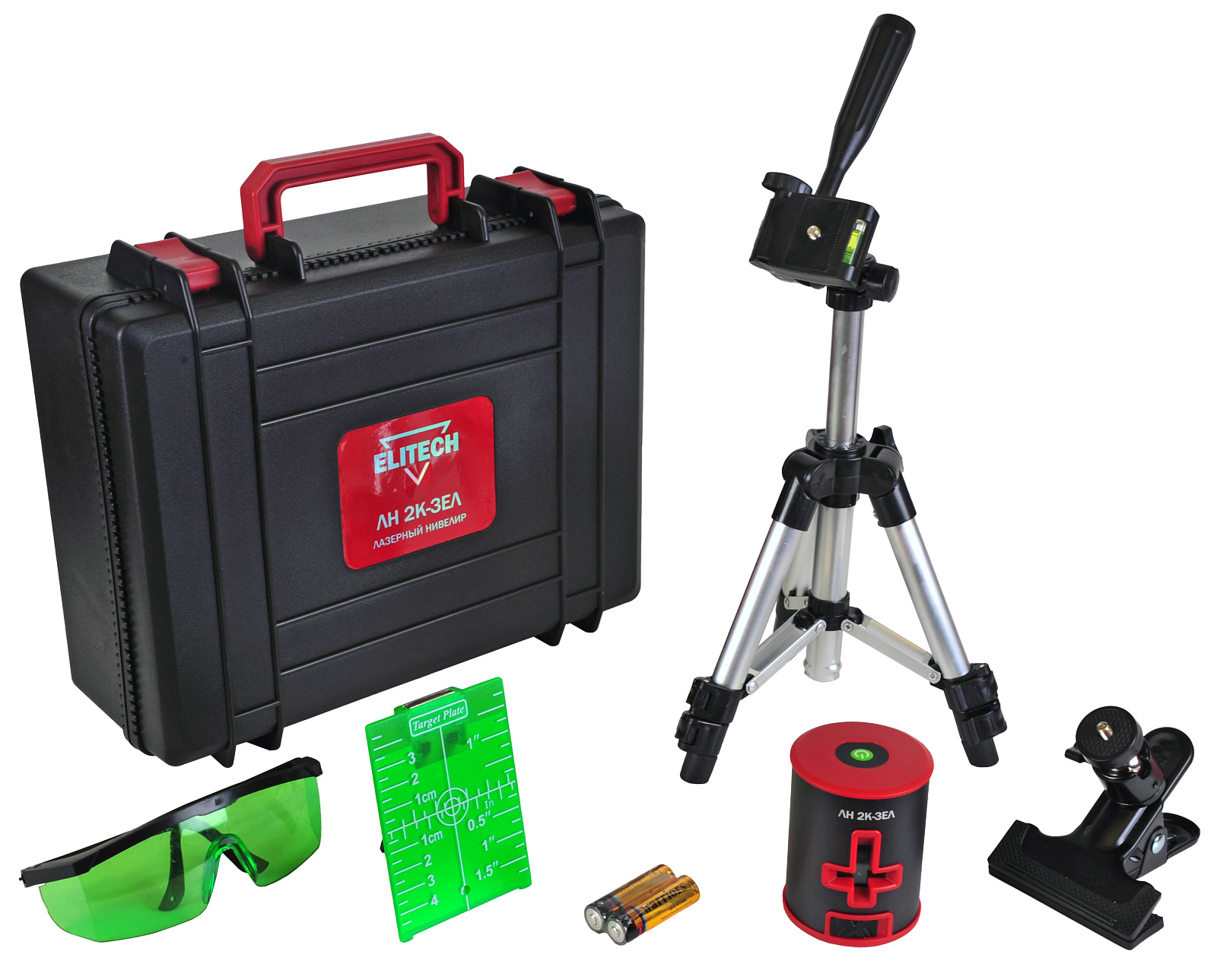 Лазерный нивелир ELITECH ЛН 2К-ЗЕЛ с автоматическим самовыравниванием проецирует горизонтальную и вертикальную линии с образованием точки пересечения этих линий. Есть возможность отключить самовыравнивание для проецирования наклонных линий. Цвет луча зеленый. Дальность работы до 20 метров. Нивелир можно установить на штатив с резьбой 1/4 дюйма.