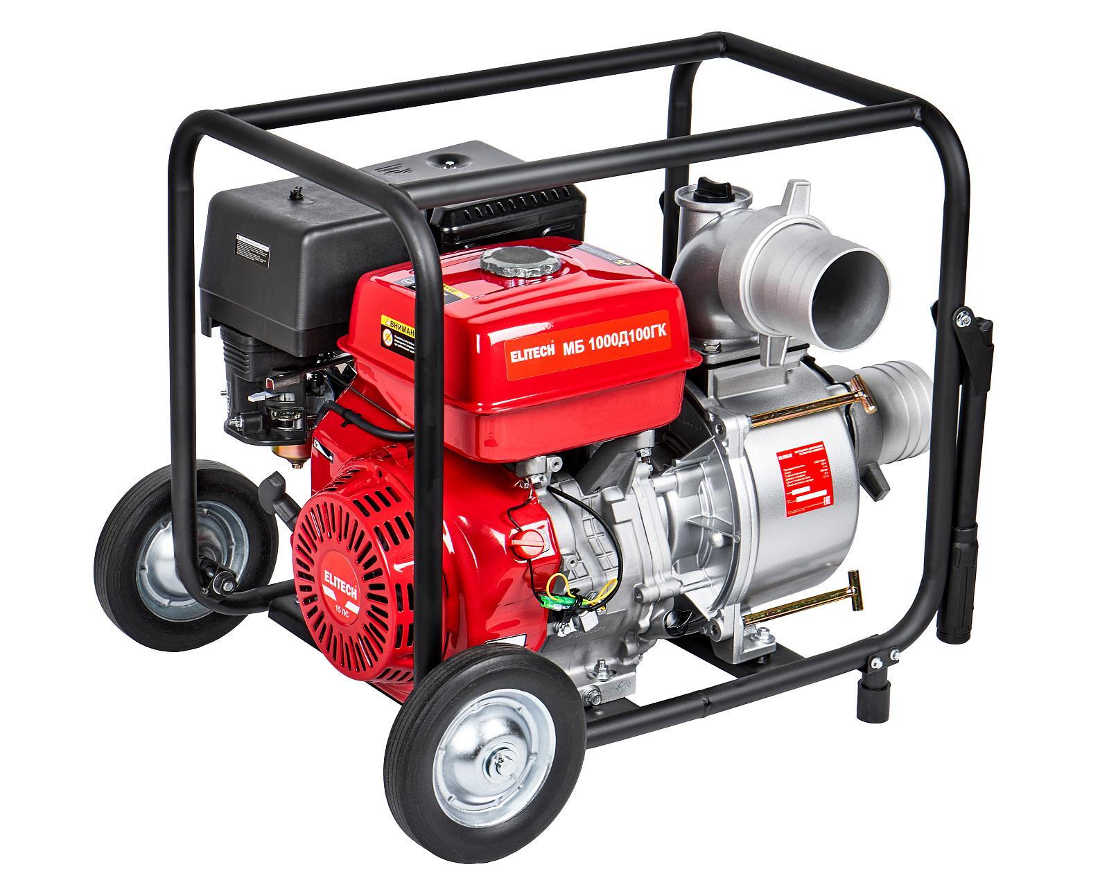 Мотопомпа МБ 1000 Д100ГК с 4-х тактным бензиновым двигателем и ручным стартером, производительностью 1080 л/мин, применяется для перекачивания загрязненной воды с диаметром частиц до 25 мм. Металлическое рабочее колесо. Максимальный напор до 20 метров и глубина всасывания 7 м.