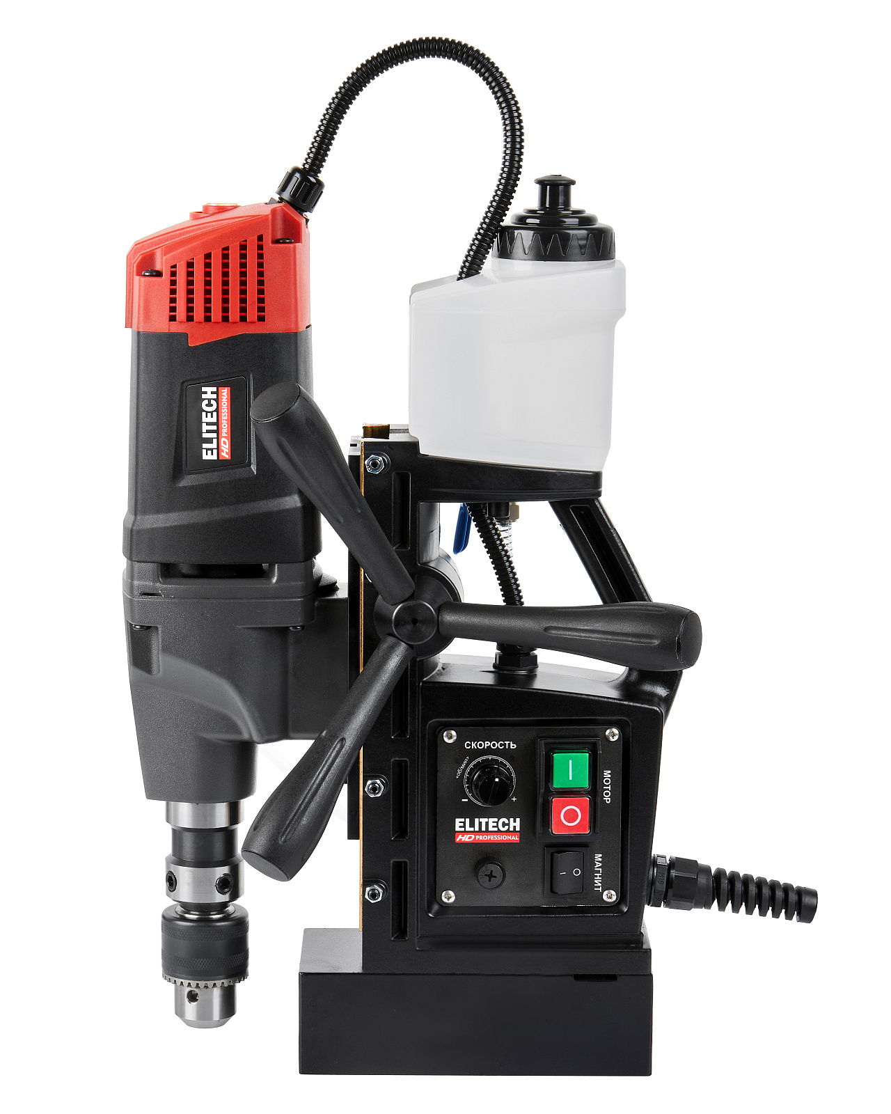 Сверлильный станок ELITECH HD MCD 1635E на магнитной подушке мощностью 1600 Вт предназначен для сверления металлоконструкций на месте монтажа. Крепление станка возможно в разных положениях за счет использования электромагнита подушки.