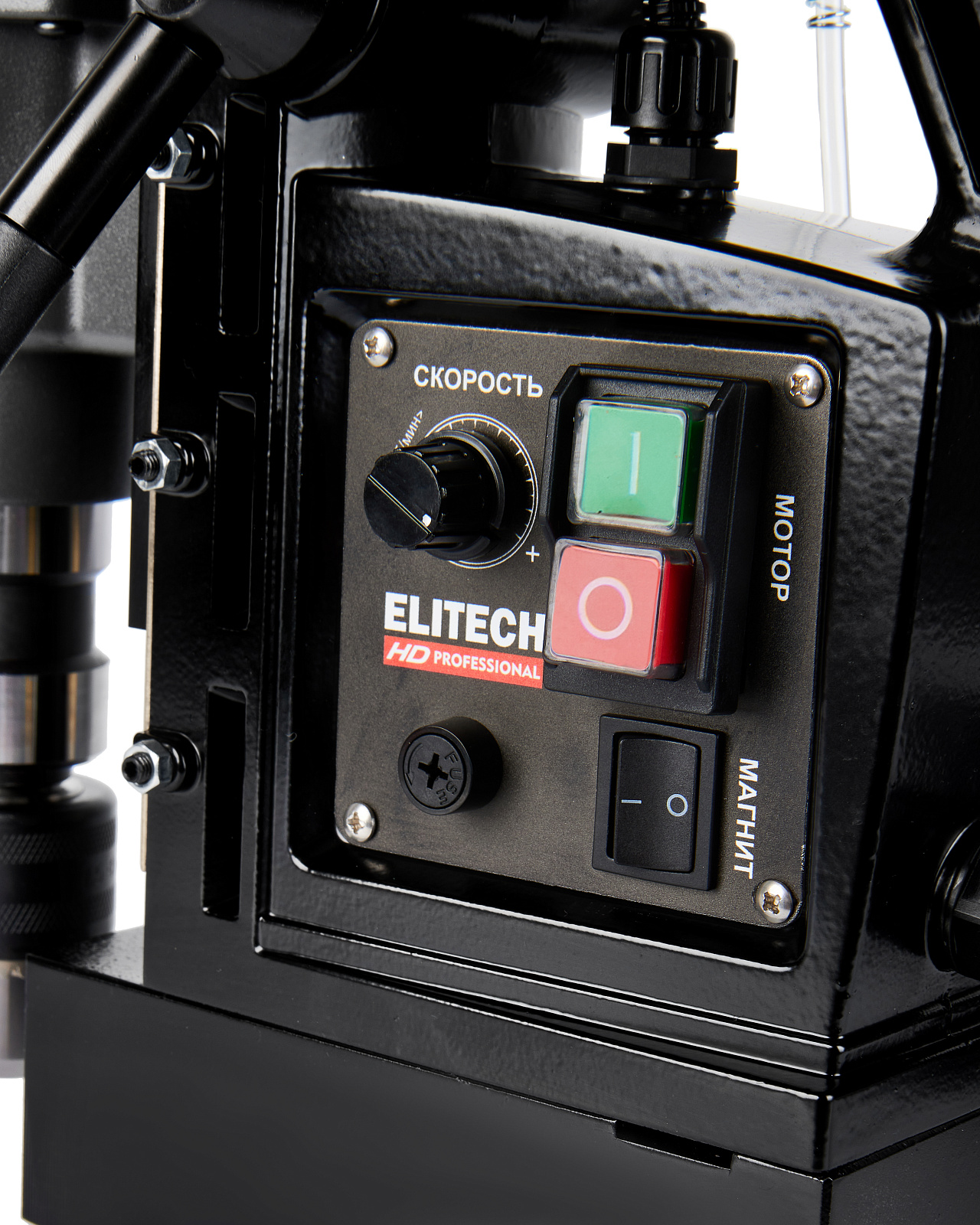 Сверлильный станок ELITECH HD MCD 1850E на магнитной подушке мощностью 1750 Вт предназначен для сверления металлоконструкций на месте монтажа. Крепление станка возможно в разных положениях за счет использования электромагнита подушки.
