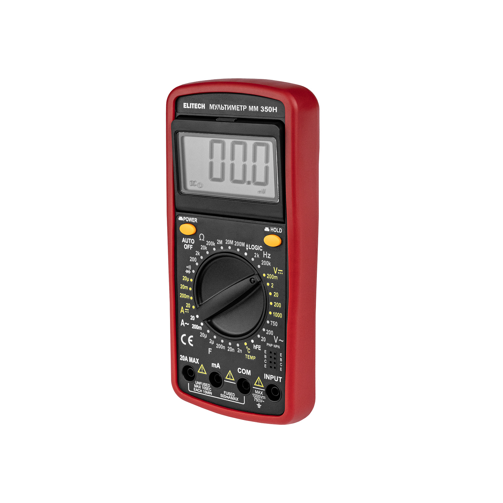 Мультиметр с питанием от элемента 6F22 (9 В) представляет собой портативный прибор для измерения параметров электрических цепей и радиоэлементов. Модель ММ 350Н измеряет напряжение до 1000 В и ток до 20 А.