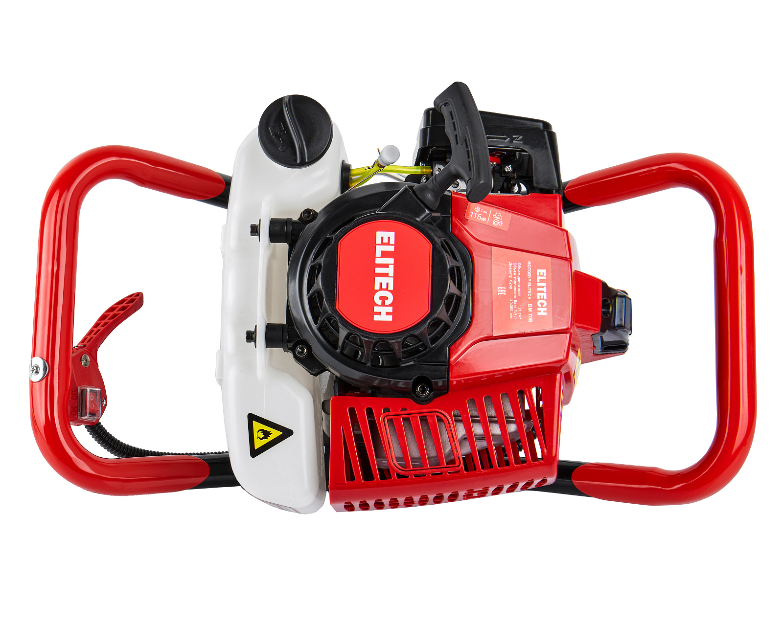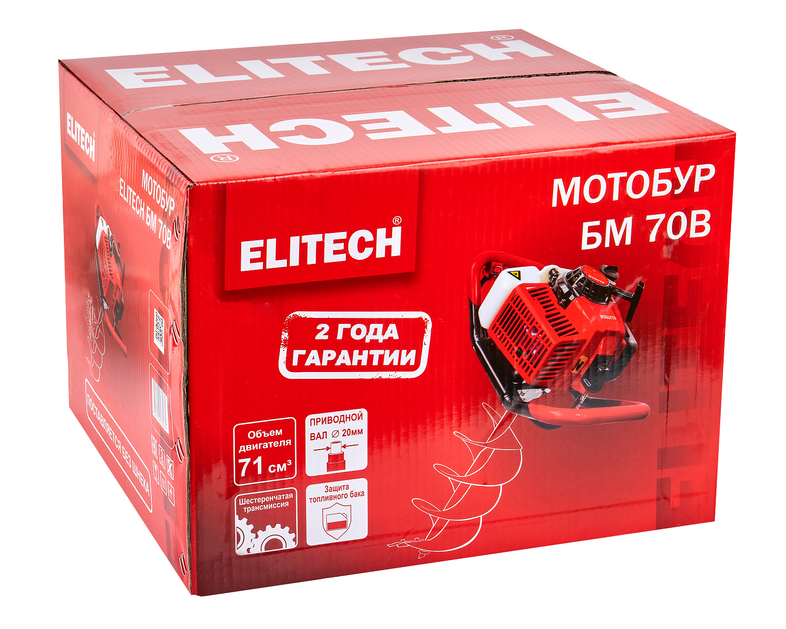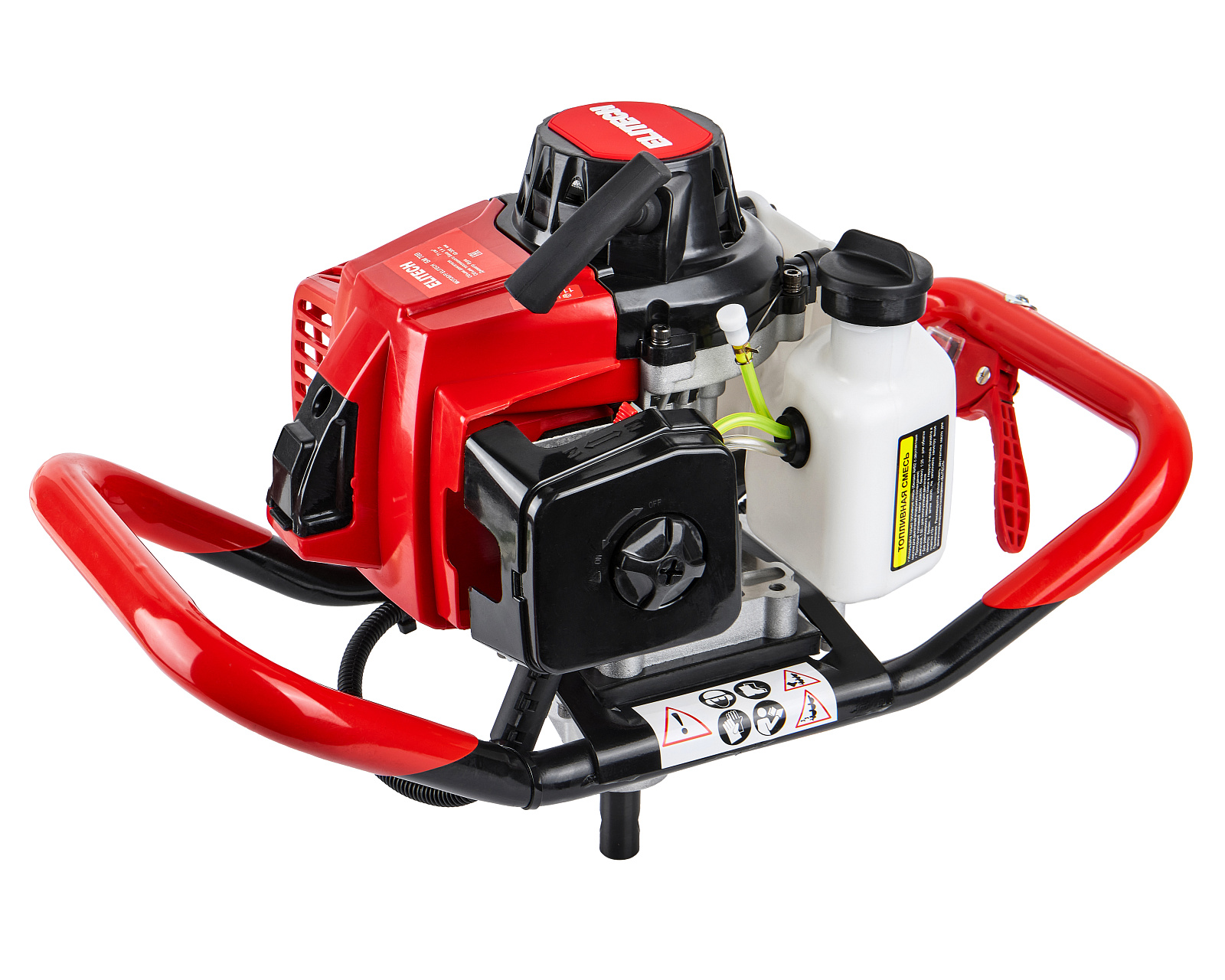 Мотобур ELITECH БМ 70В мощностью 3,3 л.с. предназначен для бурения грунта и льда шнеком диаметром от 40 мм до 300 мм на глубину до 1,8 метра.