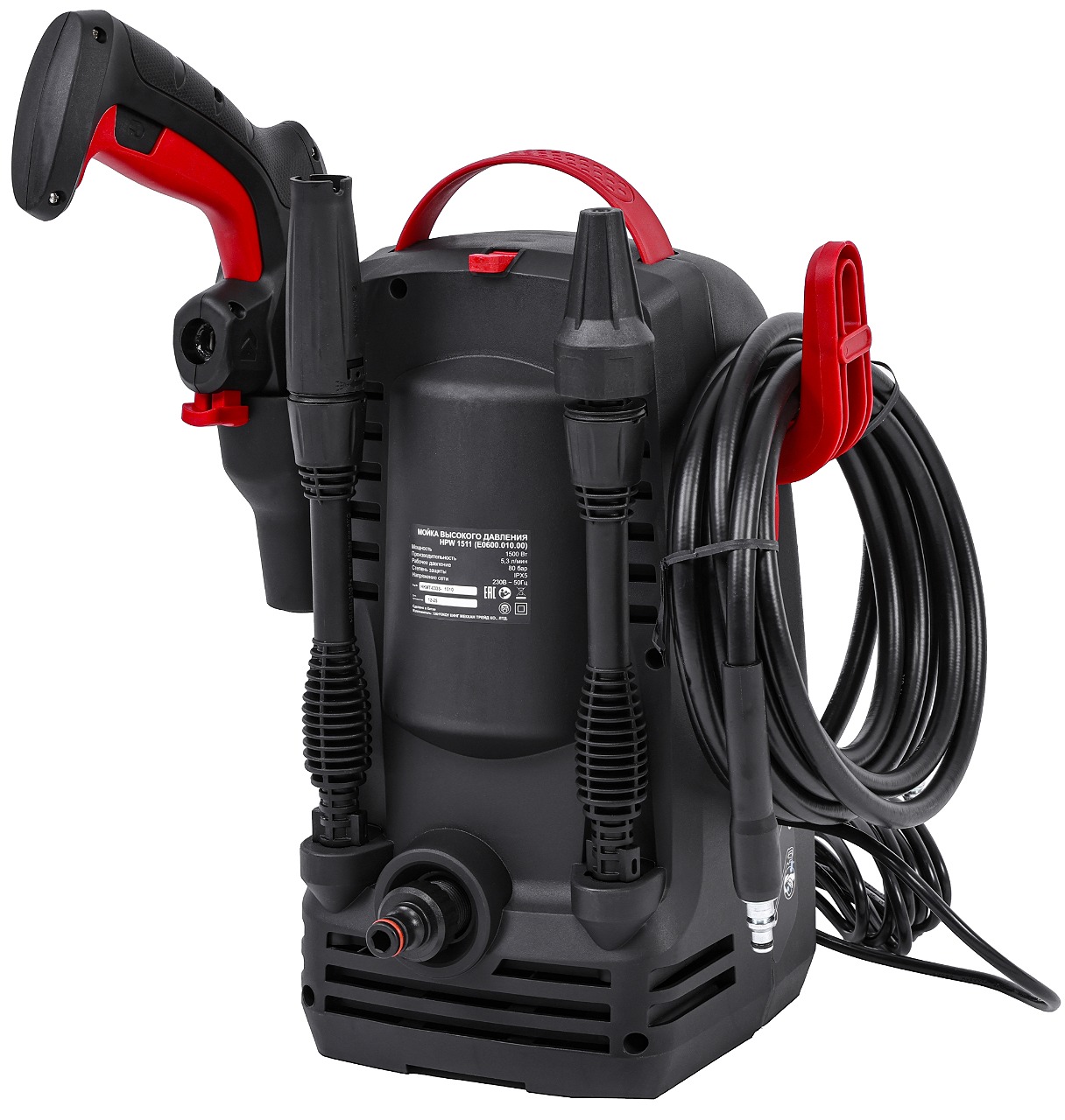 Мойка высокого давления мощностью 1500 Вт с рабочим давлением 80 бар (макс. 105 бар) и шлангом высокого давления длиной 5 м, предназначена для мойки чистой водой без механических примесей, автомобилей и любой другой техники, а также террас, тротуарной и фасадной плитки, фасадов зданий, прочистки дождевых сливов и т.п.