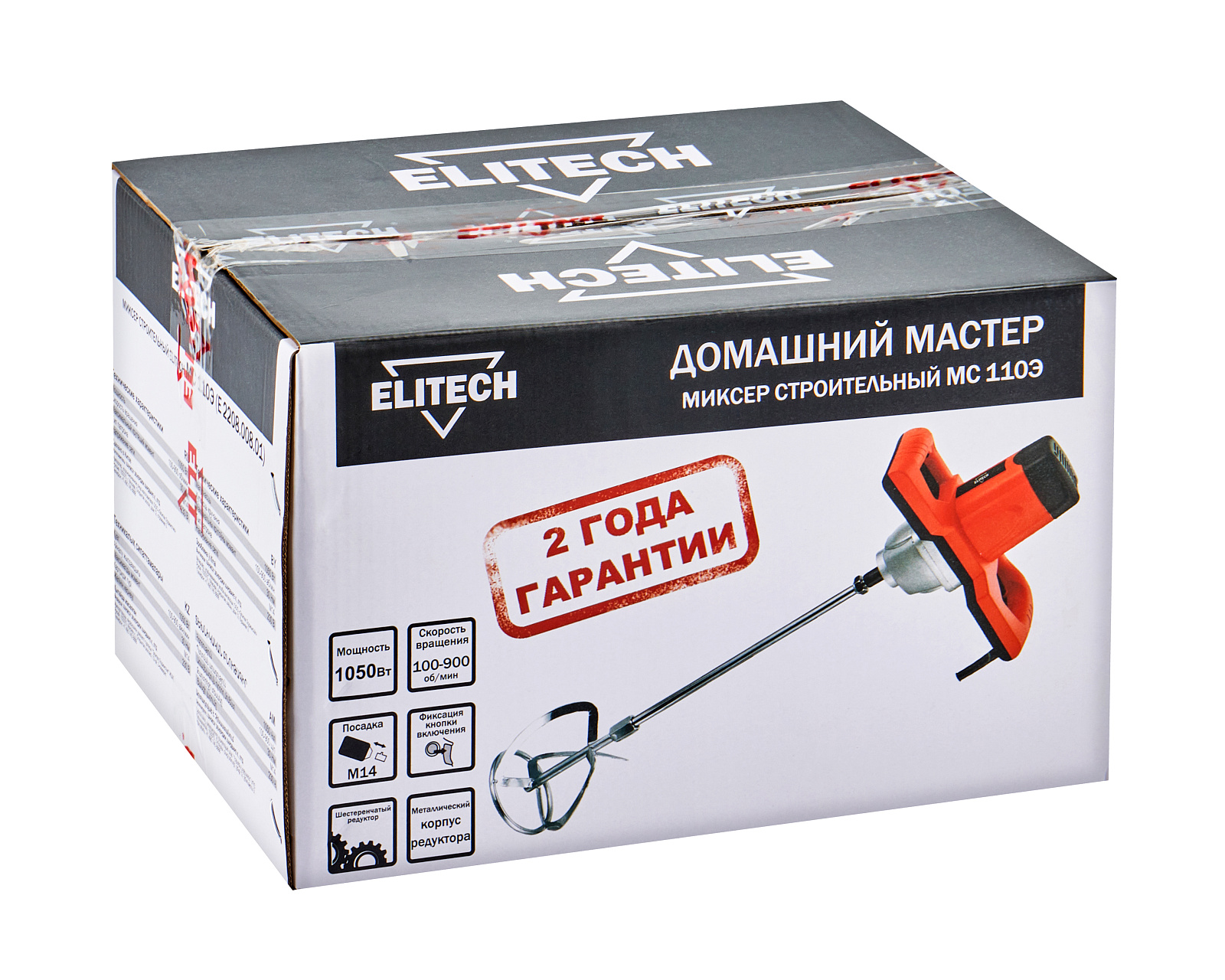 Строительный миксер мощностью 1050 Вт, с шестеренчатым редуктором со скоростью вращения насадки-шнека в диапазоне 300 – 900 об/мин, используется для перемешивания строительных и отделочных материалов и смесей.