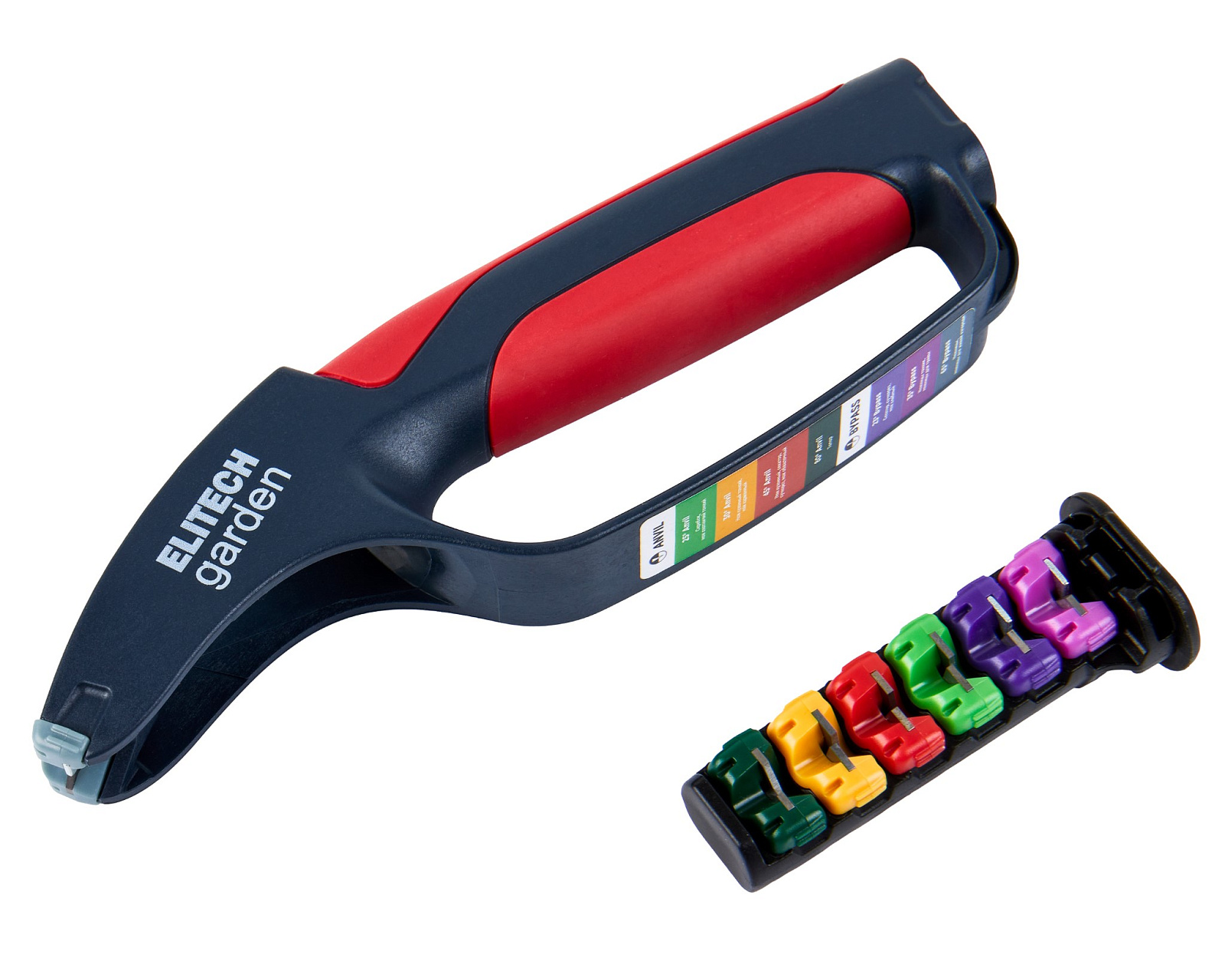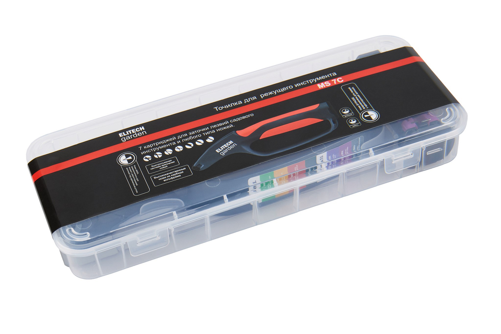 Точилка с семью сменными насадками-картриджами из карбида вольфрама (в кейсе) применяется для заточки различного садового и бытового режущего инструмента.