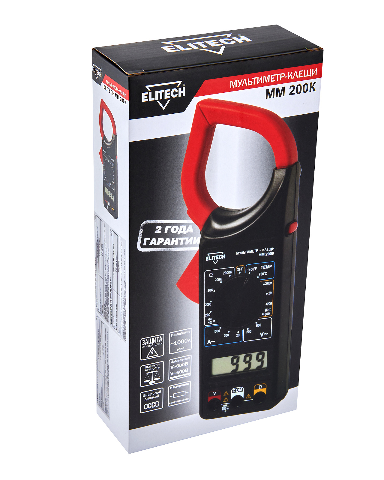 Мультиметр клещи - это профессиональный инструмент с цифровым ЖК дисплеем, предназначенный для измерения тока, напряжения, сопротивления, температуры. Прибор имеет 3 входных разъёма, которые защищены от перегрузки. Благодаря малым размерам и лёгкости, работать инструментом очень комфортно.