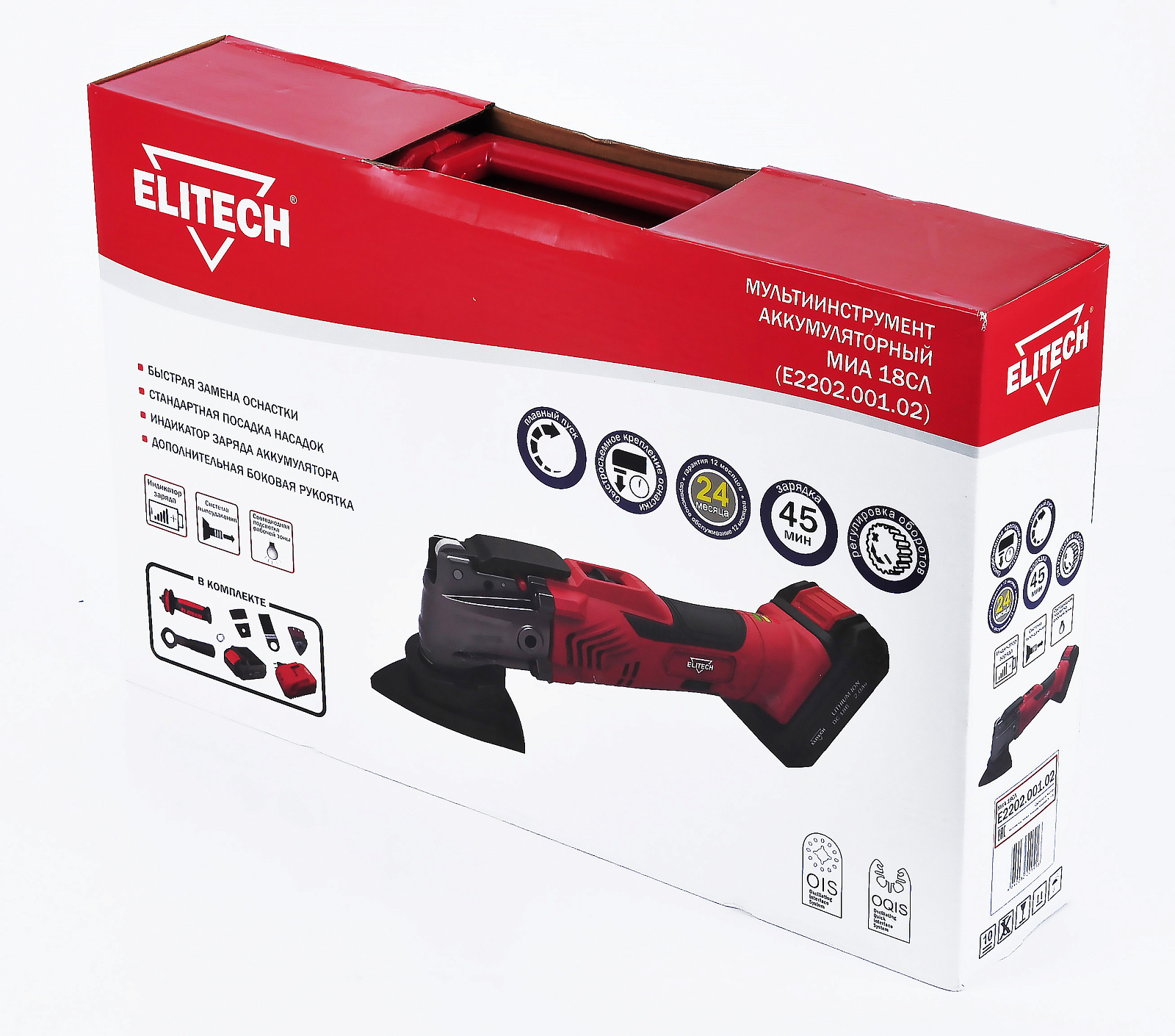 Мультитул аккумуляторный ELITECH МИА 18СЛ (Е2202.001.02) имеет возможность установки на шпиндель различных насадок и позволяет производить операции пиления, резки, шлифовки, обдирки, скобления и полировки. Совместимость: зарядное устройство 1820.098200, аккумуляторы 1820.098600 (2 Ач) и 1820.067700 (4 Ач).