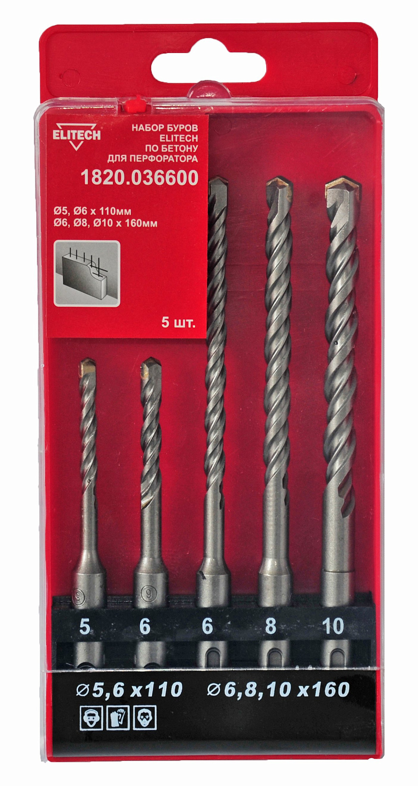 Набор буров 5 шт, хвостовик SDS+, ф5\6х110 мм, ф6\8\10х160 мм