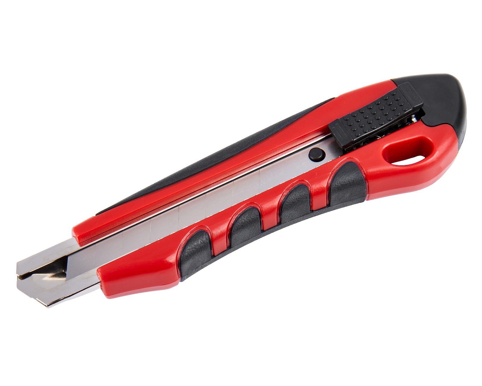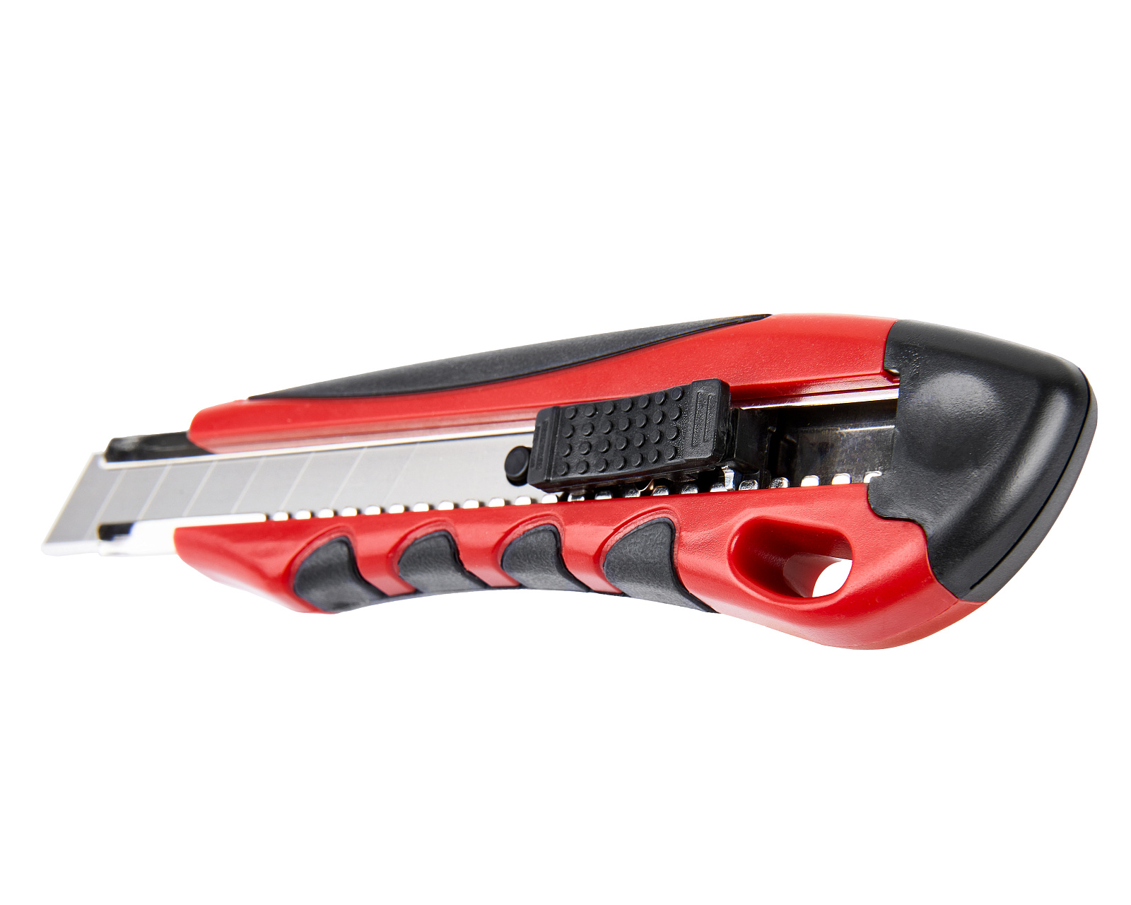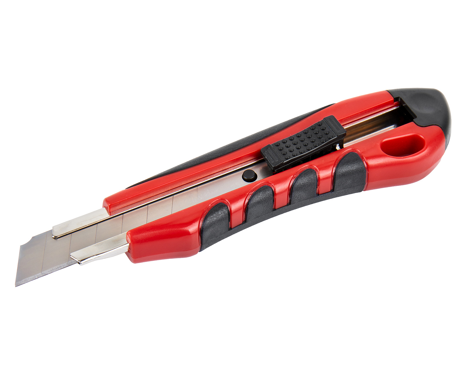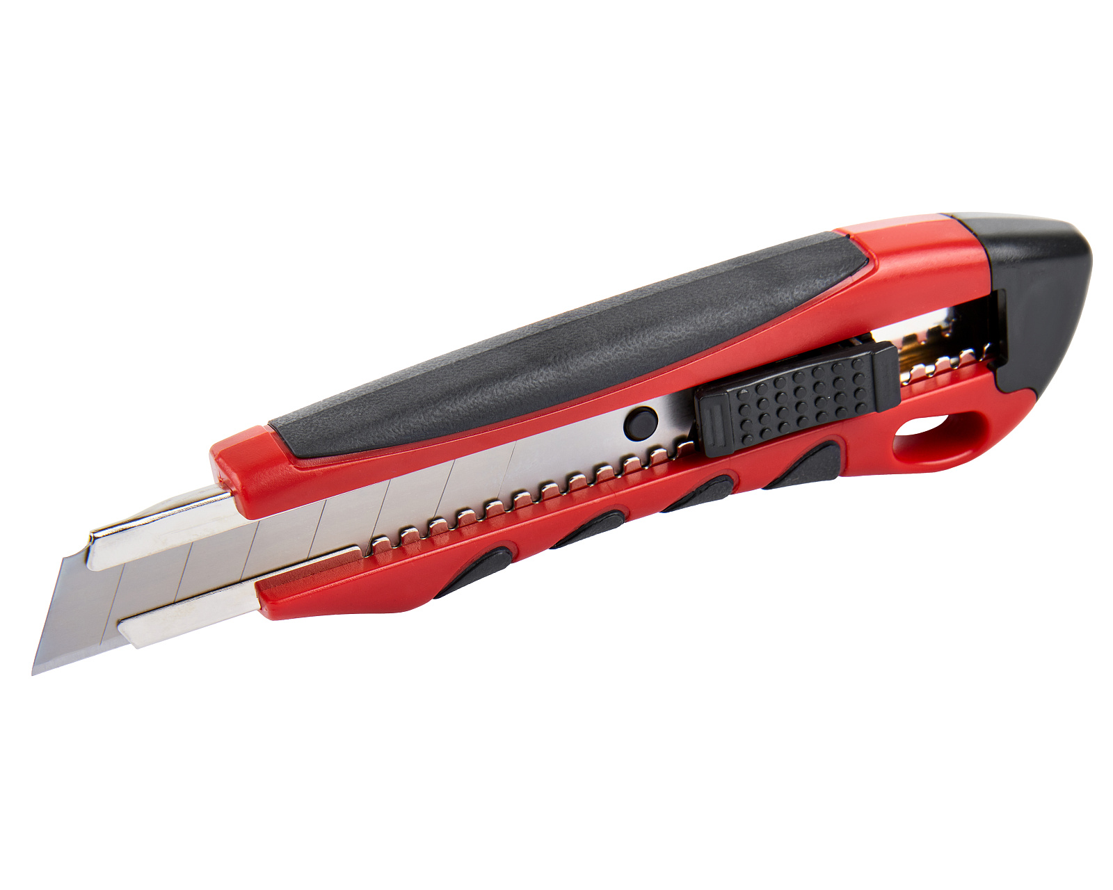 Строительный нож с шириной лезвия 18 мм, автофиксатором и эргономичной обрезиненной рукояткой из ABS-пластика используется для резки различных по твердости материалов.