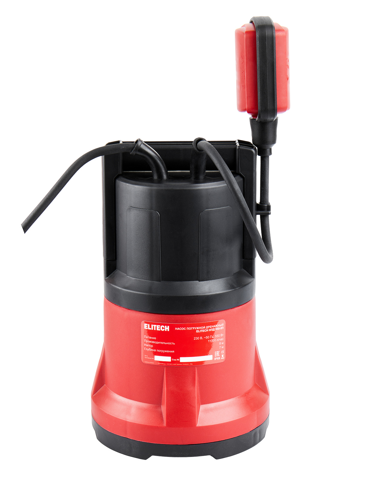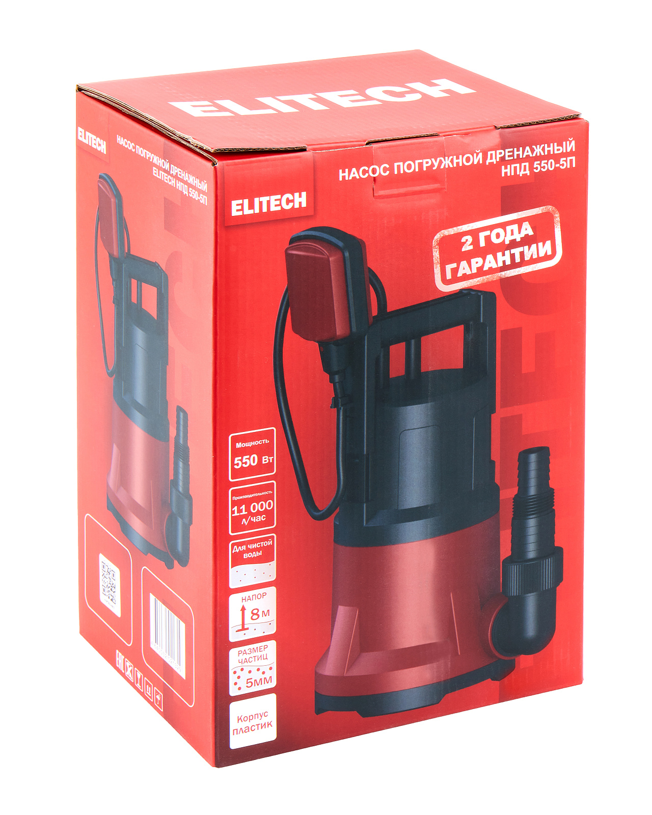 Погружной дренажный насос «ELITECH» мощностью 550 Вт и производительностью 11 000 л/час предназначен для перекачивания чистой пресной воды с диаметром твердых частиц не более 5 мм из колодцев, открытых водоемов, затапливаемых подвалов и других источников.