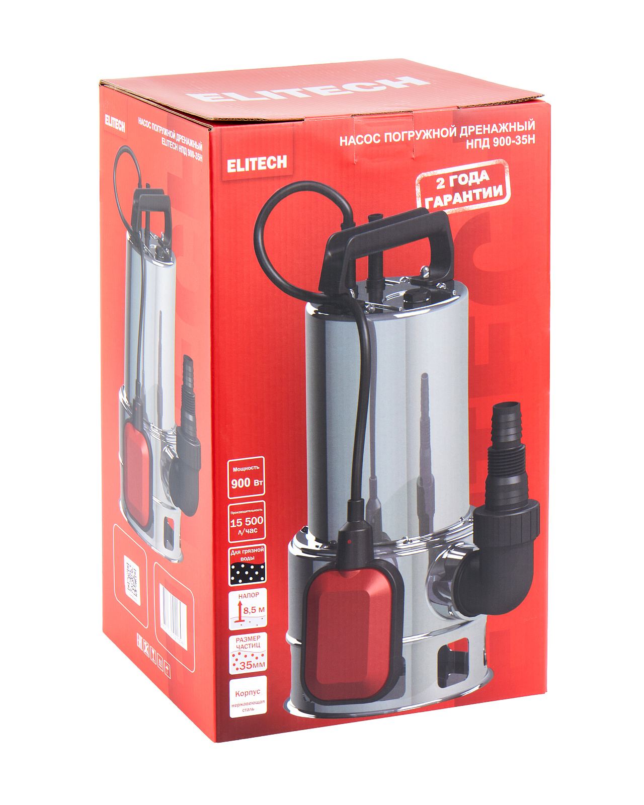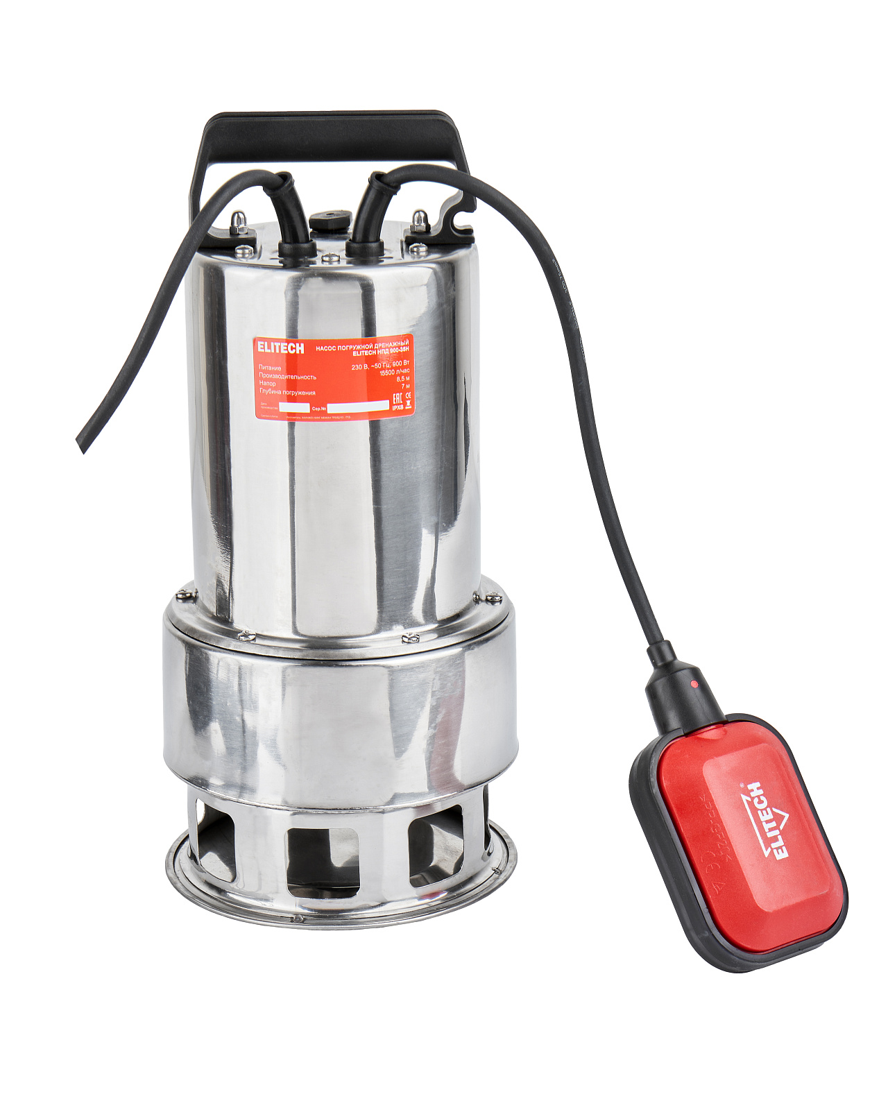 Погружной дренажный насос «ELITECH» мощностью 900 Вт и производительностью 15 500 л/час предназначен для перекачивания загрязненной воды с диаметром твердых частиц не более 35 мм из колодцев, открытых водоемов, затапливаемых подвалов и других источников.