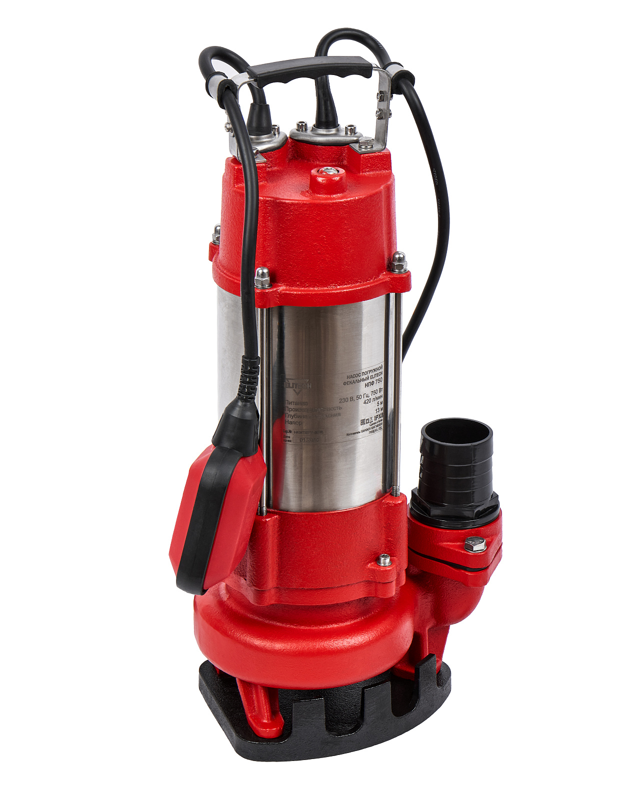 Погружной фекальный насос мощностью 750 Вт и производительностью 420 л/мин, предназначен для перекачивания воды из колодцев, открытых водоемов, затапливаемых подвалов, выгребных ям и других источников.