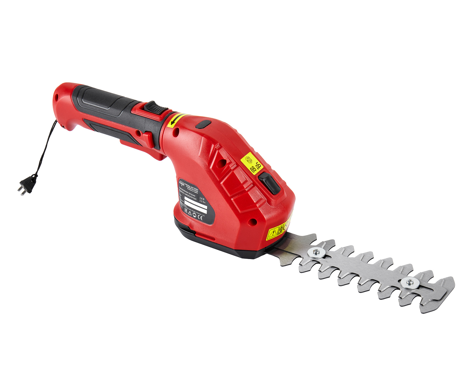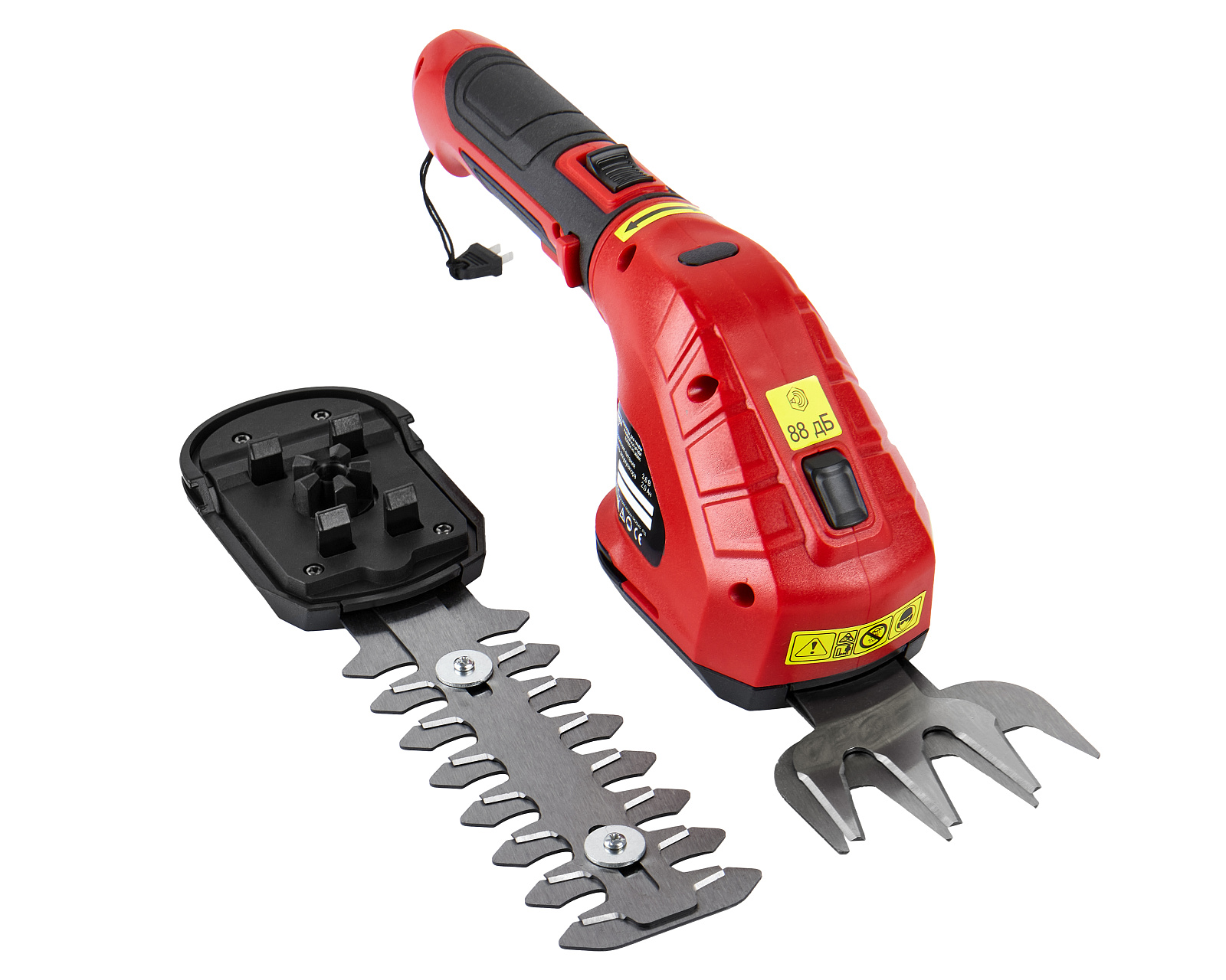 В комплект поставки входят две сменные режущие насадки: ножницы шириной 80 мм — для кошения травы и обработки кромки газона, двусторонние ножи длиной 120 мм — для обрезки молодых побегов на кустарниках и деревьях. Режущие аксессуары изготовлены из высококачественной стали. Лазерная заточка режущих кромок и высокая скорость перемещения компонентов режущей системы обеспечивают высокое качество и скорость выполнения работ. Система крепления аксессуаров позволяет быстро и без дополнительных манипуляций производить их замену. Автономная работа инструмента на одной зарядке аккумулятора составляет до 60 минут.