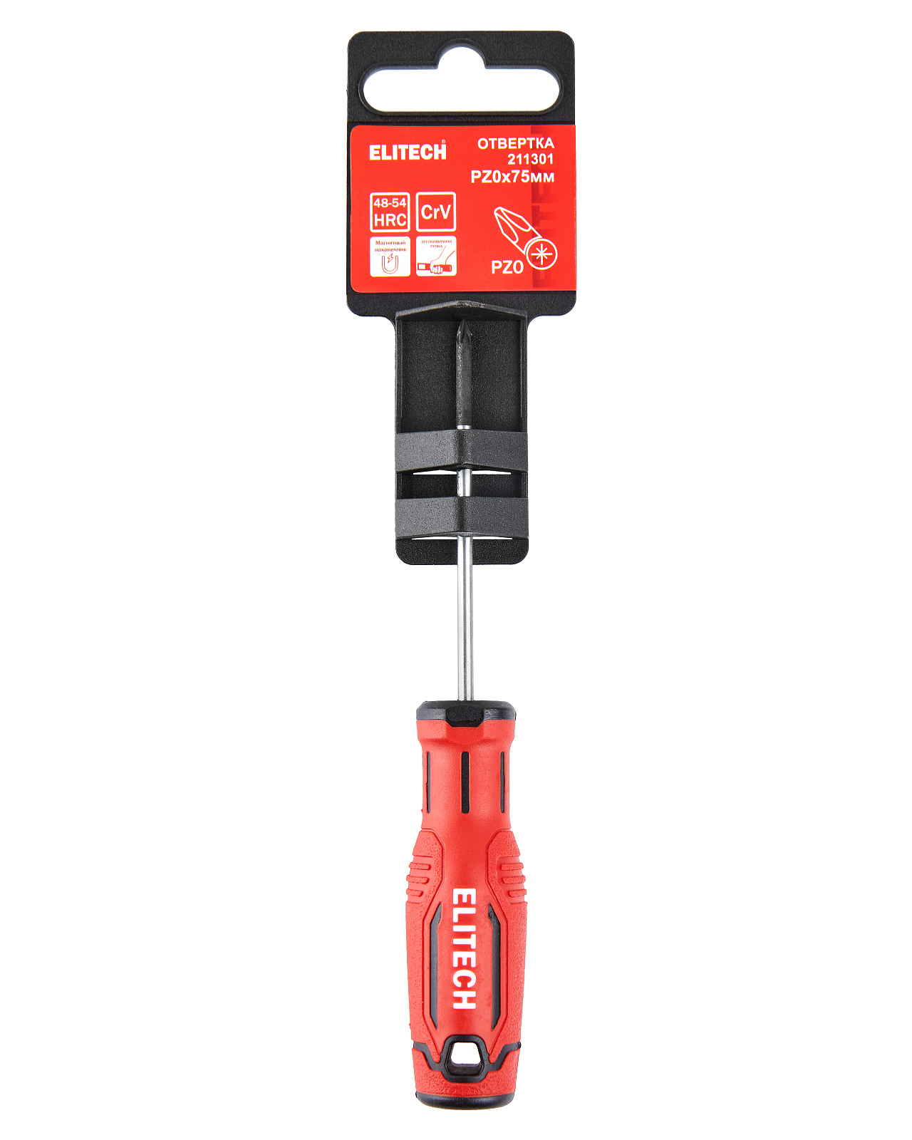 Отвертка с крестообразным шлицом PZ0х75мм из хромованадиевой стали с магнитным наконечником и эргономичной рукояткой.