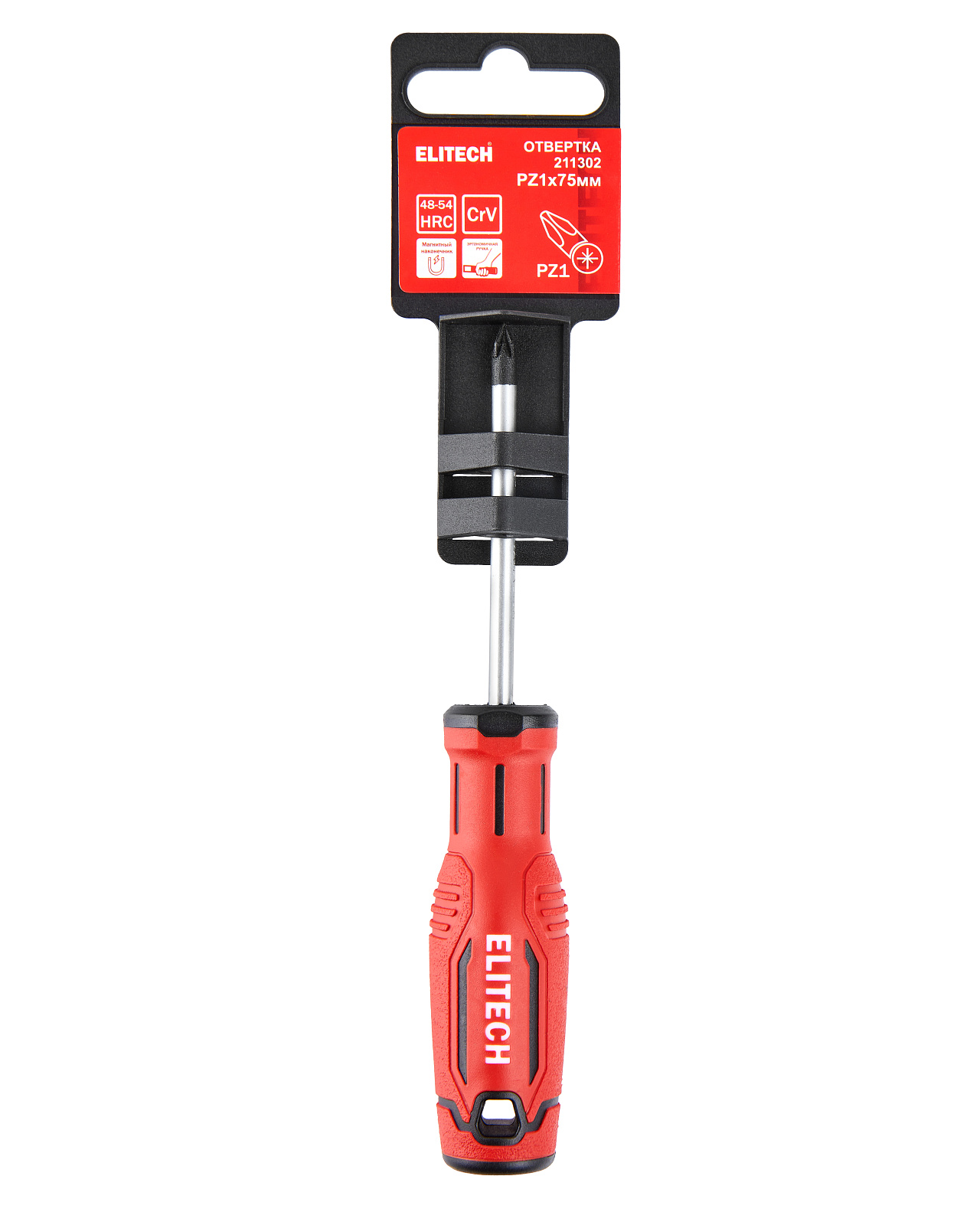 Отвертка с крестообразным шлицом PZ1х75мм из хромованадиевой стали с магнитным наконечником и эргономичной рукояткой.