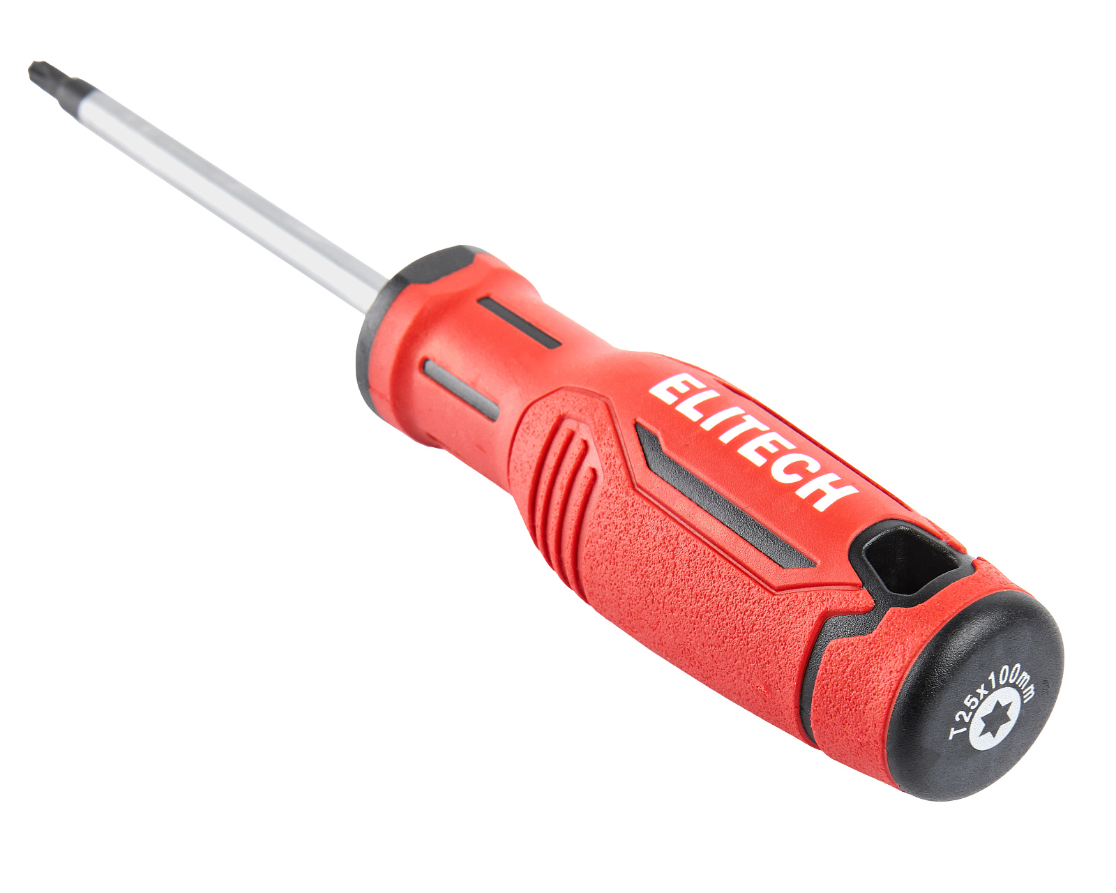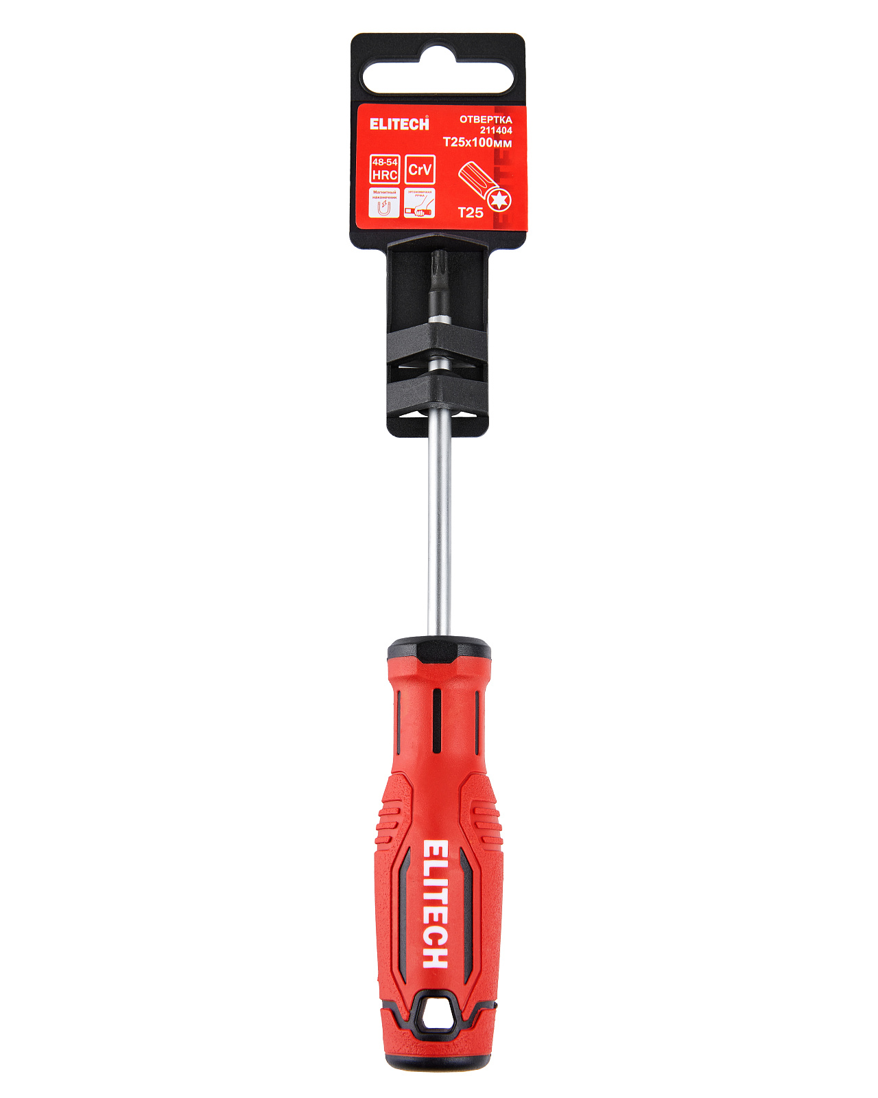Отвертка Т25х100мм из хромованадиевой стали с магнитным наконечником и эргономичной рукояткой.