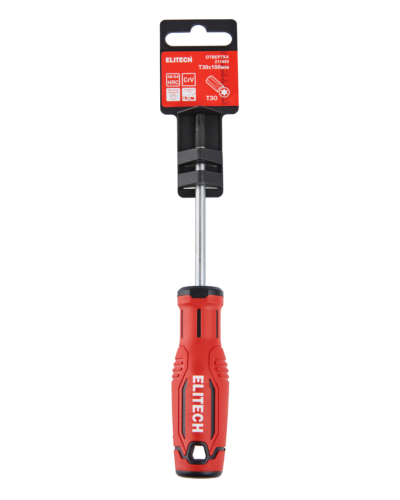 Отвертка Т30х100мм из хромованадиевой стали с магнитным наконечником и эргономичной рукояткой.
