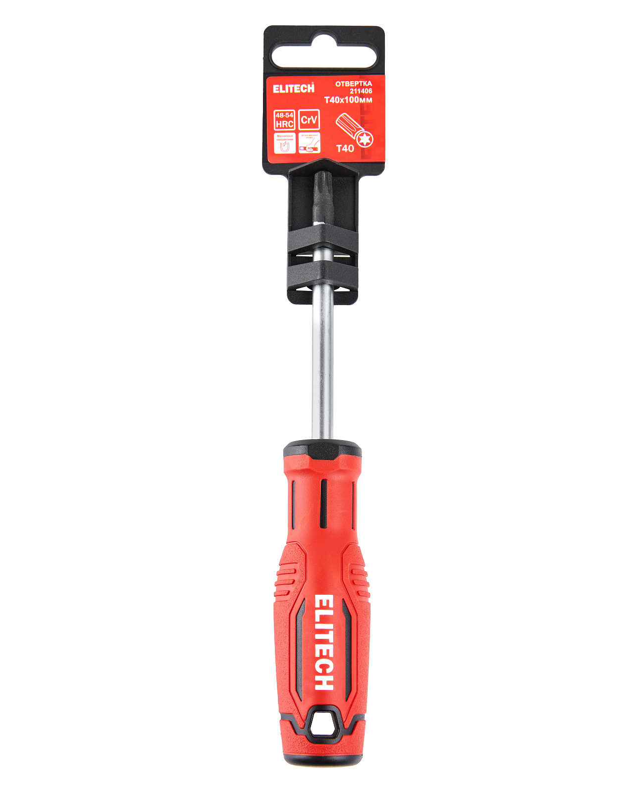 Отвертка Т40х100мм из хромованадиевой стали с магнитным наконечником и эргономичной рукояткой.