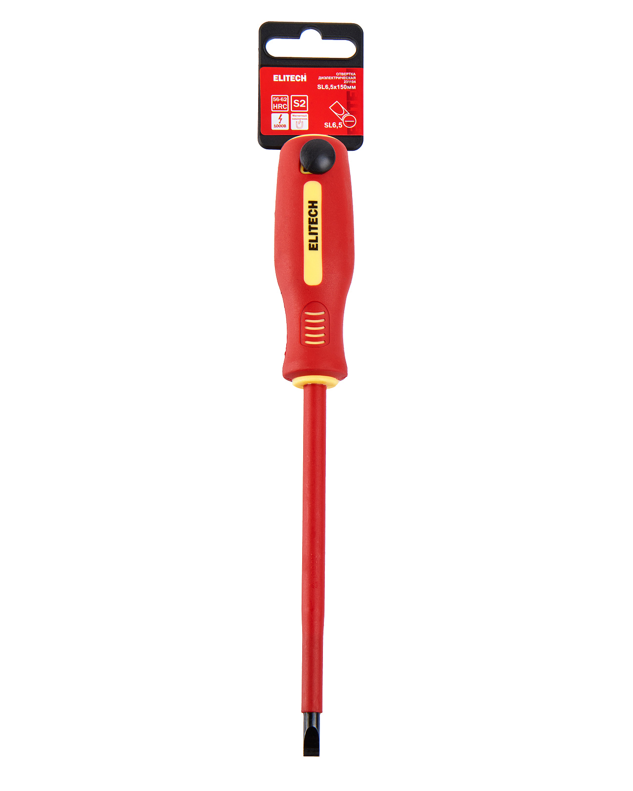 Отвертка диэлектрическая SL6,5x150мм. Наконечник отвертки намагниченный и имеет плоскую форму шлица (SL) шириной 6,5 мм. Длина рабочей части стержня 150 мм. Стержень выполнен из стали S2, которая обладает высокой прочностью и твердостью. Отвертка имеет диэлектрическую ручку и диэлектрическое покрытие стержня, которое выдерживает напряжение до 1000В переменного тока.