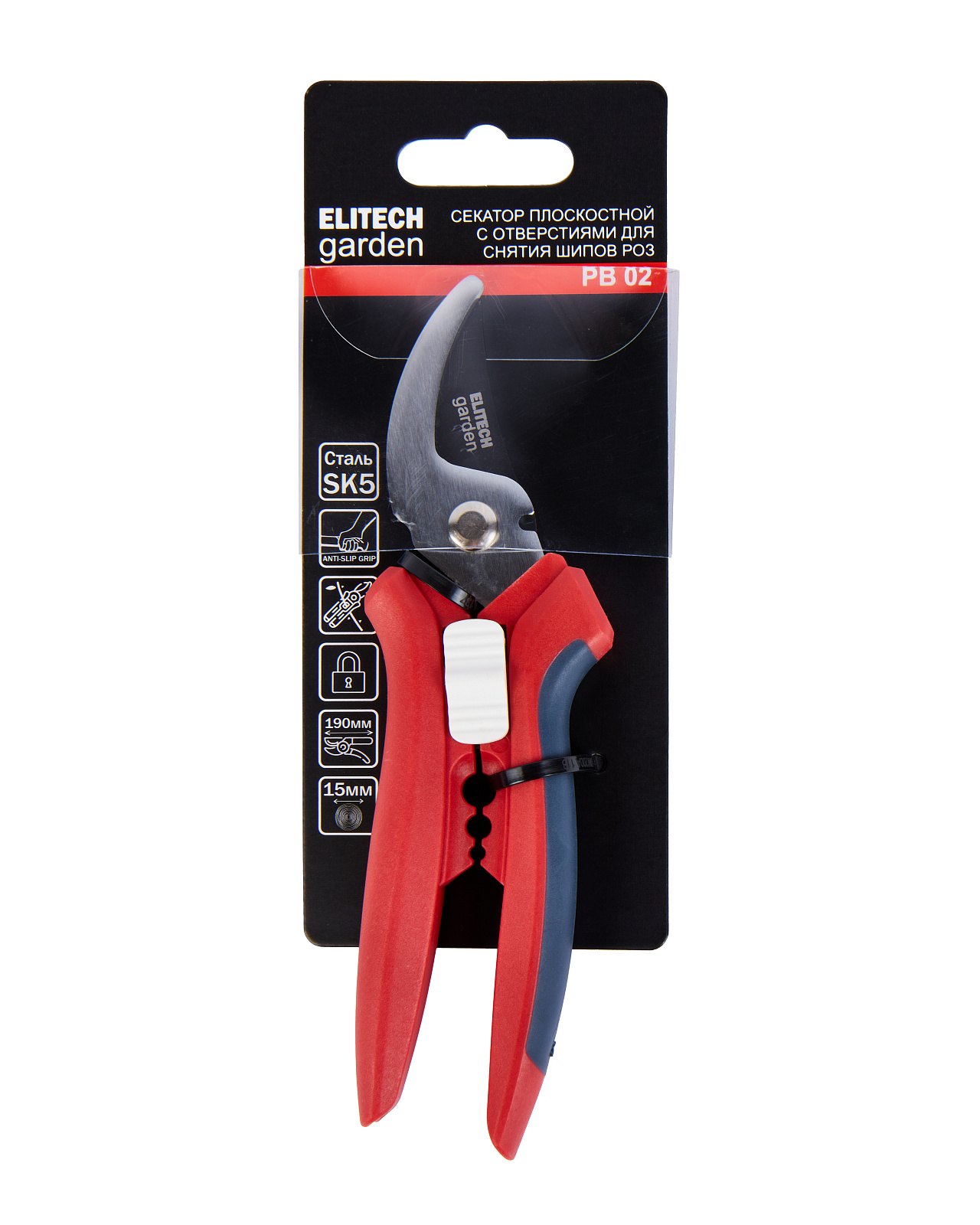 Плоскостной секатор длиной 190 мм используется для резки стеблей и веток максимальным диаметром до 15 мм, а также для удаления шипов роз.