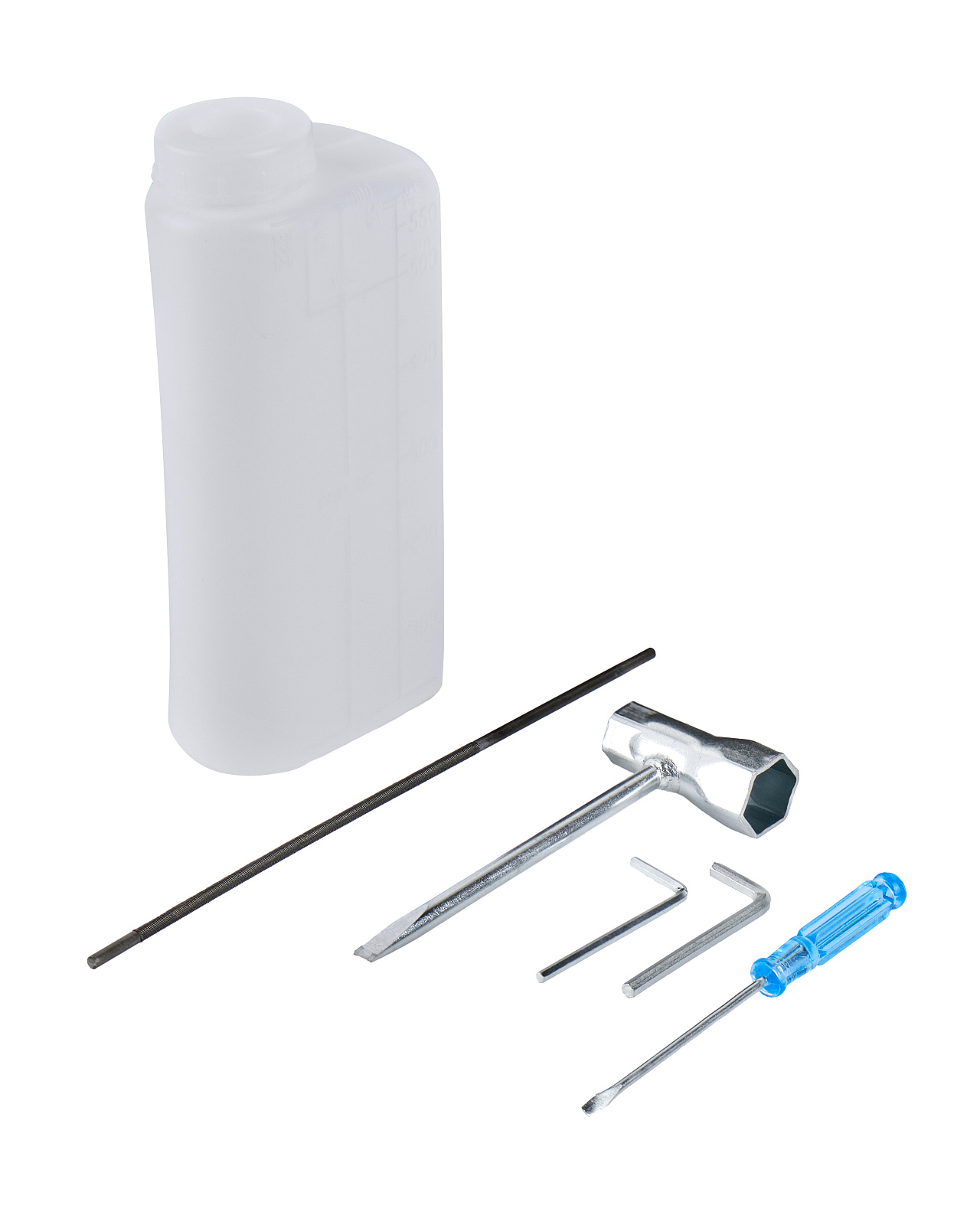 При обслуживании бензопилы к свече и воздушному фильтру легко добраться, крышка фиксируется стальными защёлками. Воздушный фильтр имеет силиконовые основания, что улучшает его прилегание при установке и предотвращает попадание пыли и грязи в область цилиндропоршневой группы. Для комбинированного ключа снизу задней рукоятки есть специальная ниша, где ключ надёжно фиксируется и всегда под рукой, чтобы, например, подтянуть цепь, а механизм натяжения регулируется со стороны крышки сцепления, что позволяет отсоединить бензопилу, если пильную шину и цепь зажало в пропиле.