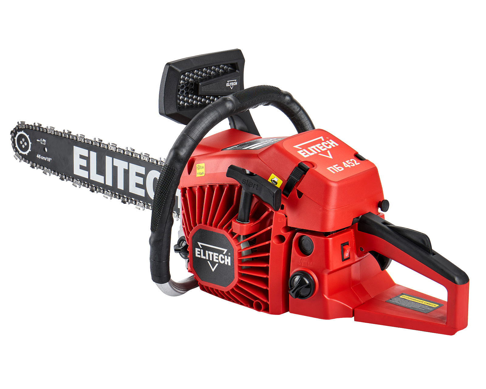 Бензиновая цепная пила Elitech ПБ 452 (E1611.013.00) мощностью 2,7 л.с. и с шиной длиной 45 см, предназначена для валки деревьев, обрезки веток и сучьев, раскряжевки и заготовки дров. Может применяться для плотницких работ, расчистки местности от кустарников и молодой поросли деревьев, и других хозяйственных работ, связанных с пилением древесины.